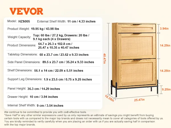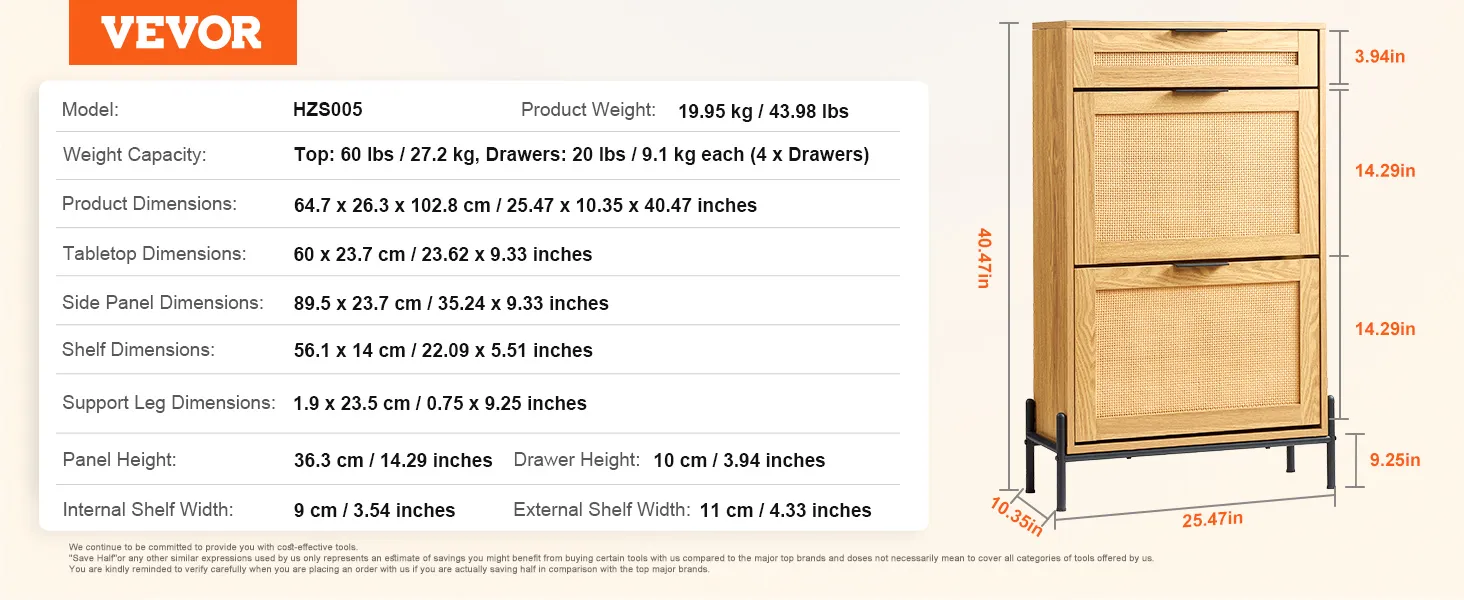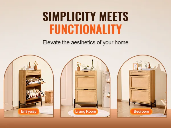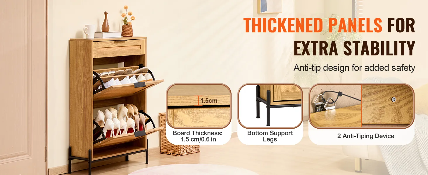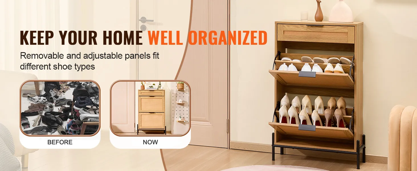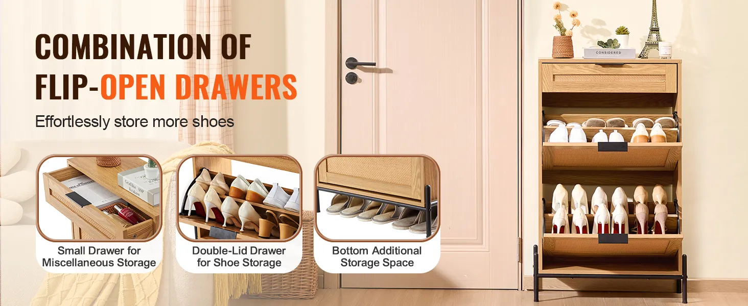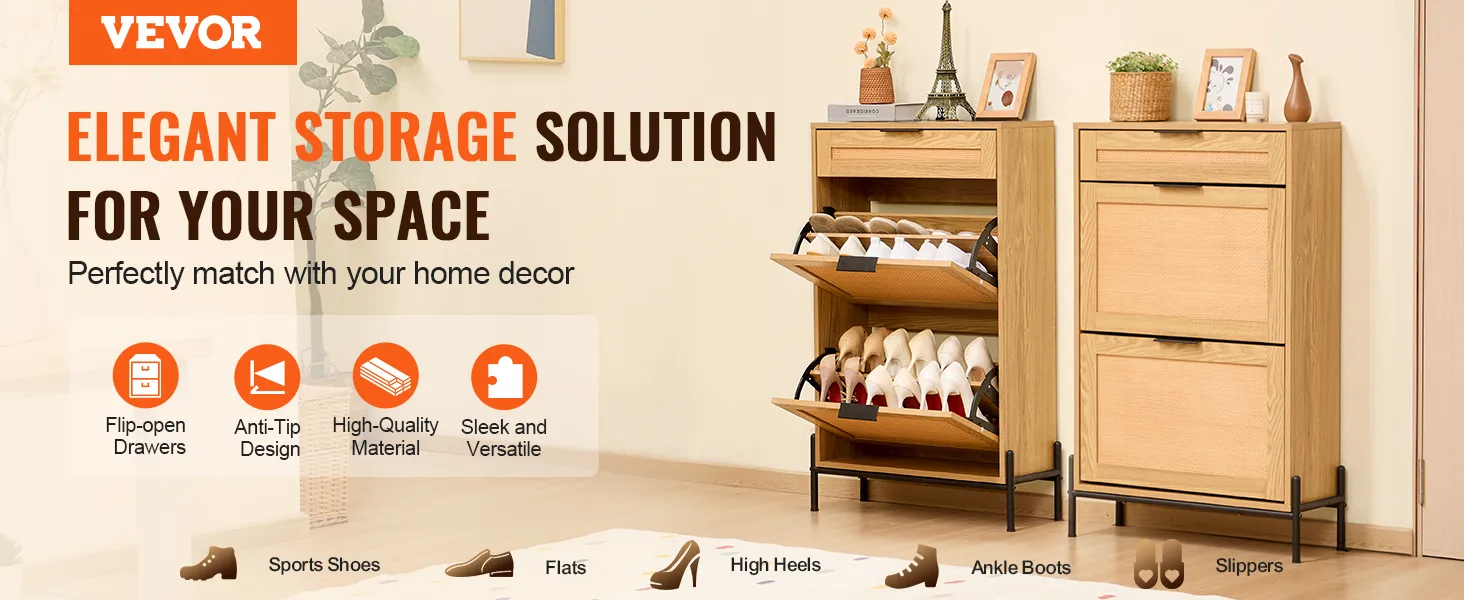 Transform your entryway with VEVOR multifunctional rattan shoe cabinet!