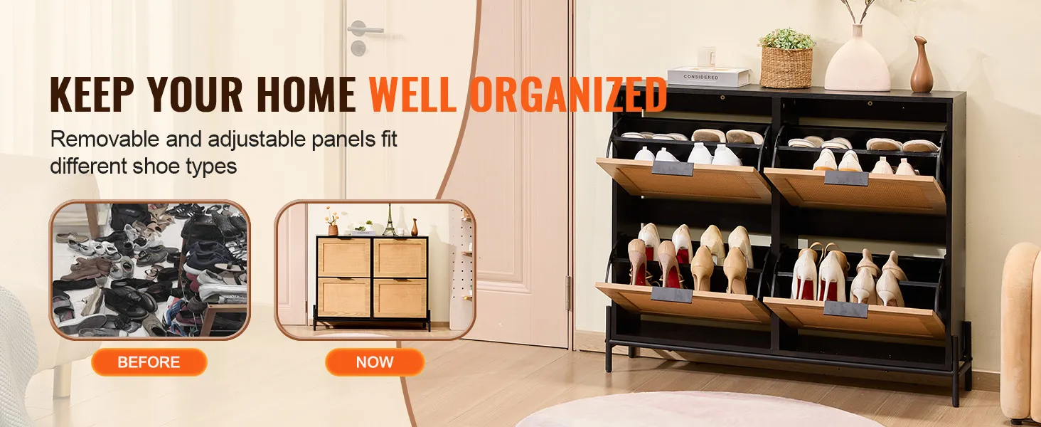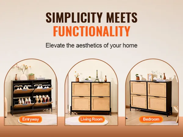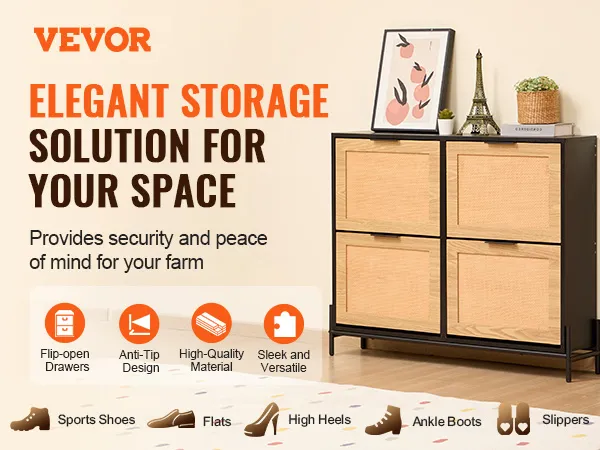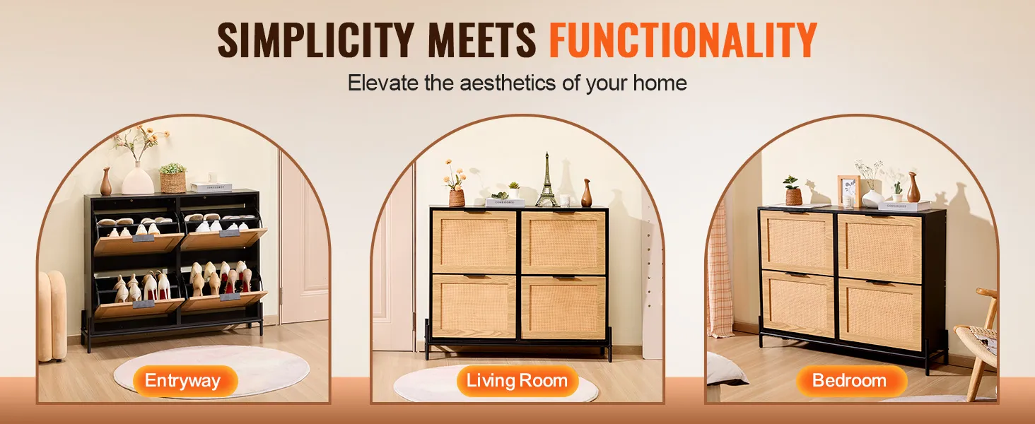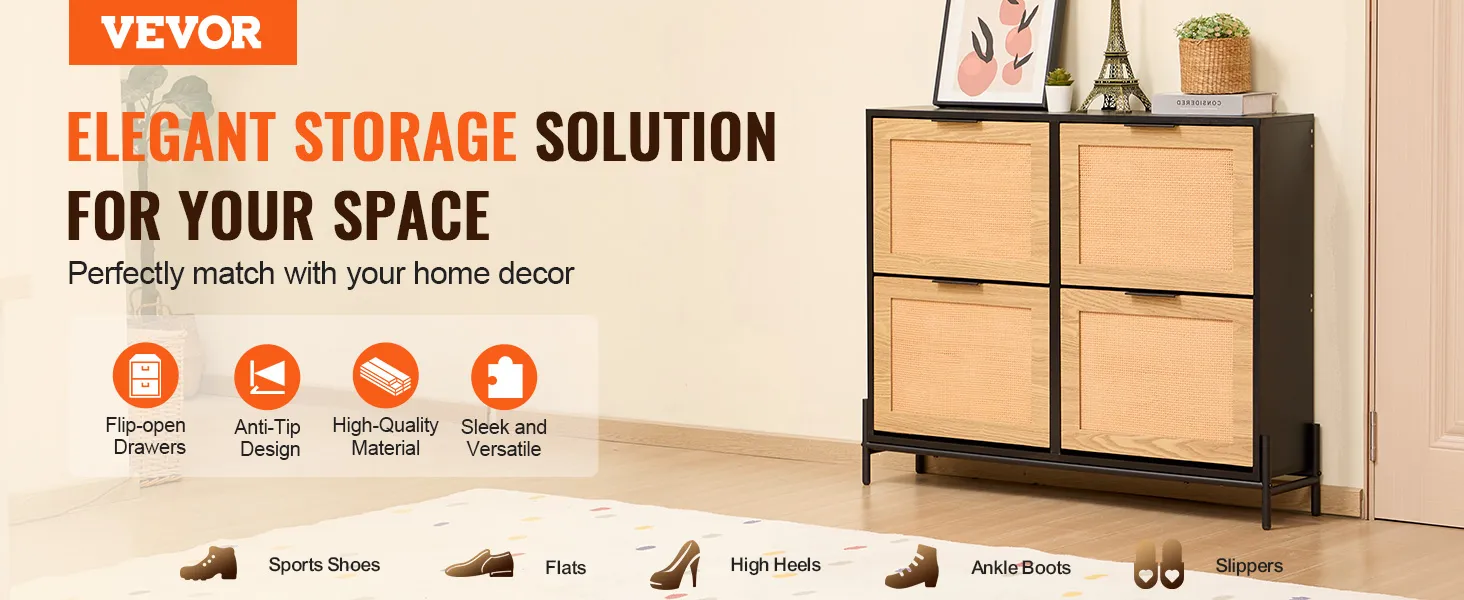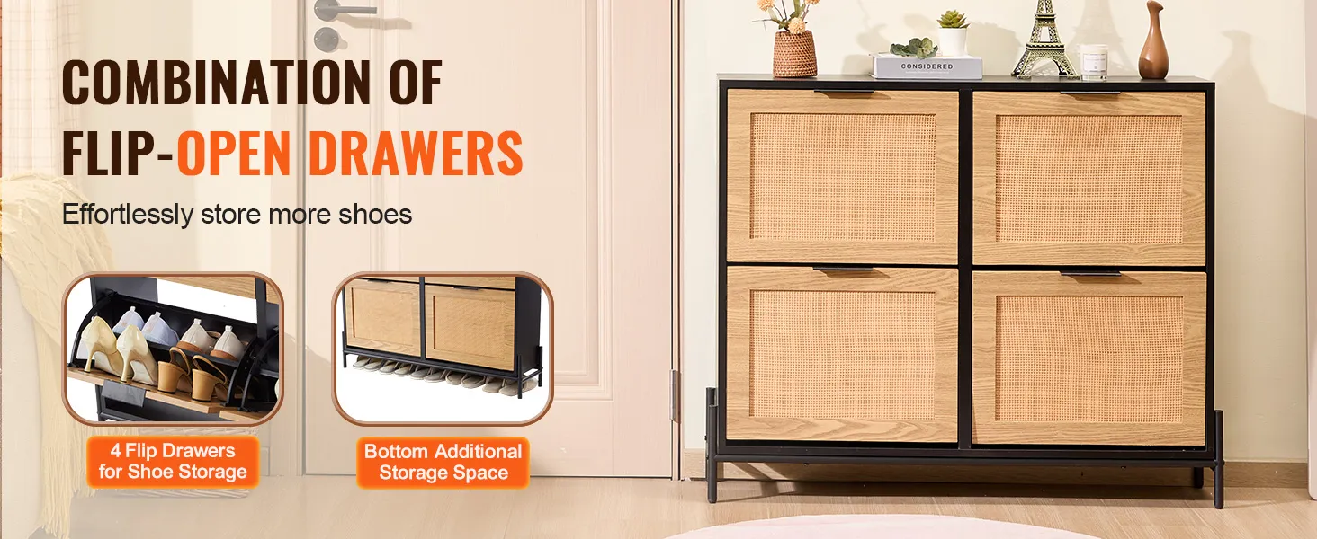 Transform your entryway with VEVOR multifunctional rattan shoe cabinet!