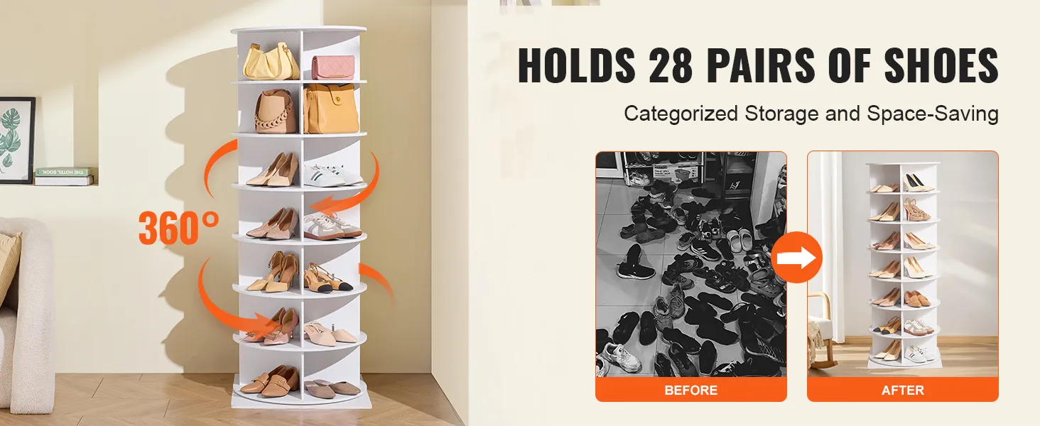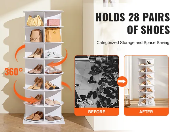 Dankzij de 360° rotatie is elk paar gemakkelijk toegankelijk. Dankzij het ontwerp met meerdere niveaus bespaart u ruimte en houdt u uw huis netjes. Je zult nooit meer problemen hebben met het vinden van je favoriete schoenen!
