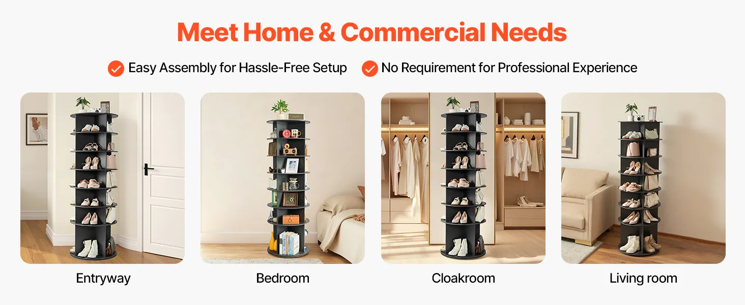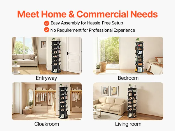 Met zijn minimalistische ontwerp en twee klassieke kleuropties past de draaibare schoenenkast harmonieus in entrees, kasten, slaapkamerhoeken en schoenenafdelingen in winkels en winkelcentra – en combineert zo opbergruimte met decoratie. Dankzij de geïllustreerde instructies en de meegeleverde accessoires is de montage een fluitje van een cent.