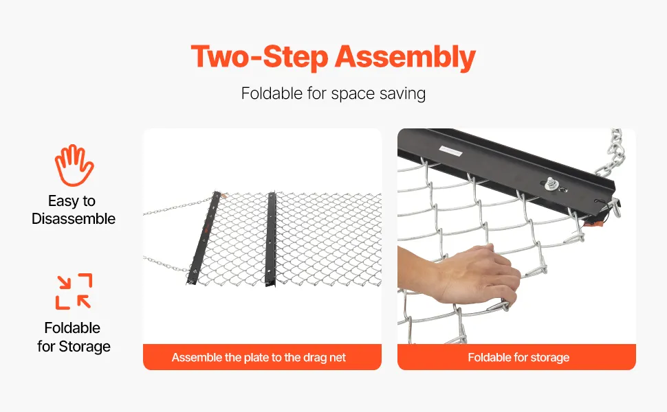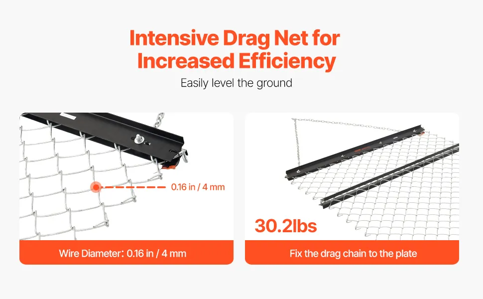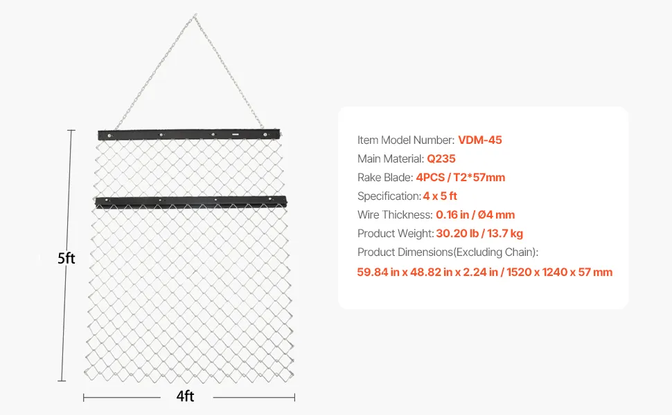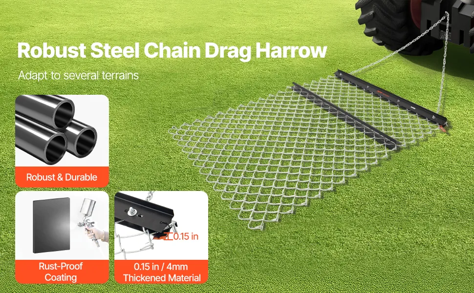 VEVOR getrokken eg, 1520x1240x57mm, kettingeg van Q235-staal, UTV-tractoraanbouwdelen voor het egaliseren van landschappen of het voorbereiden van gazons, weideeg voor grindopritten, boerderij, veldtuin