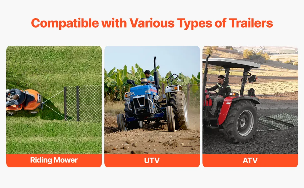 Deze sleepeg is geschikt voor een breed scala aan voertuigen, waaronder ATV's, UTV's, tuintractoren en praktische tractoren, waardoor het het ideale gereedschap is voor diverse taken.
