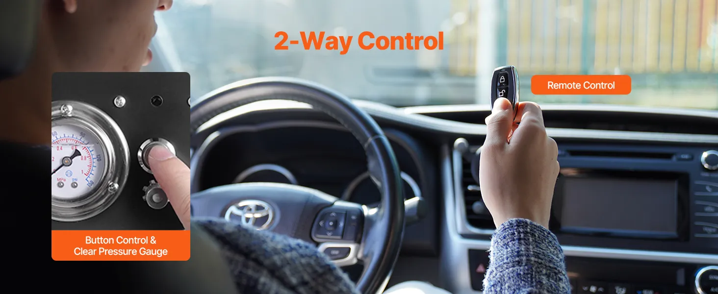 Convenient Control: The air shock controller kit enables easy control through remote control or an in-vehicle pressure gauge. Adjust your on board air compressor system for a comfortable ride, and the system automatically maintains the preset air pressure for consistent performance.