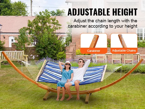 Adjustable Convenience: Designed for flexibility, this hammock frame features carabiners and chain adjustments, allowing you to easily modify the height and angle of your hammock. Whether sitting or lying down, find your perfect comfort position for daily naps or open-air picnics.