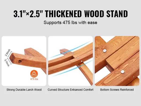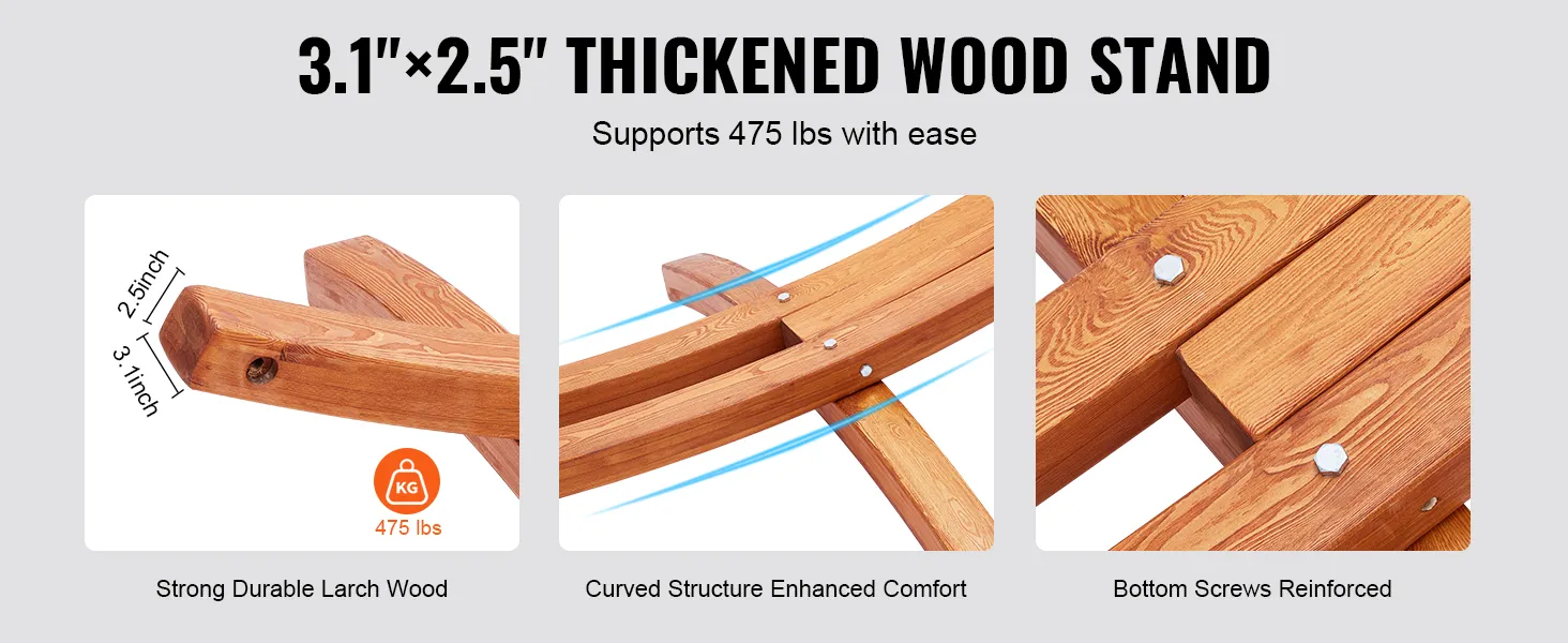 Constructed with 3.1 x 2.5 inch/80 x 65 mm solid larch wood supports, this portable hammock stand can support up to 475 pounds, ensuring your safety and comfort. The thickened frame structure provides outstanding stability and durability, easily accommodating multiple users.