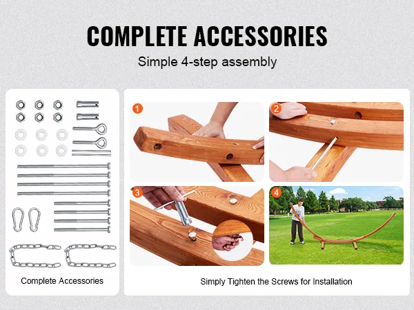 Easy Installation: Complete with all necessary fittings for a quick and easy setup. Simply tighten the screws to assemble, and with detailed instructions and a parts list included, you can effortlessly put together your stand for hammock, saving time and effort while enjoying immediate hammock comfort.