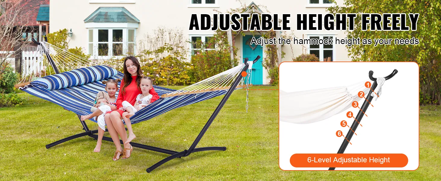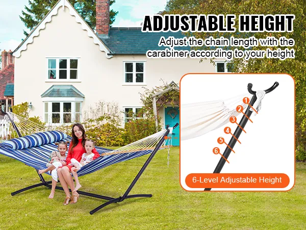 Easily adjust the height of your hammock to accommodate your needs. Our hammock frame provides 6 adjustment positions, ensuring everyone can find their comfortable height for the perfect experience every time.