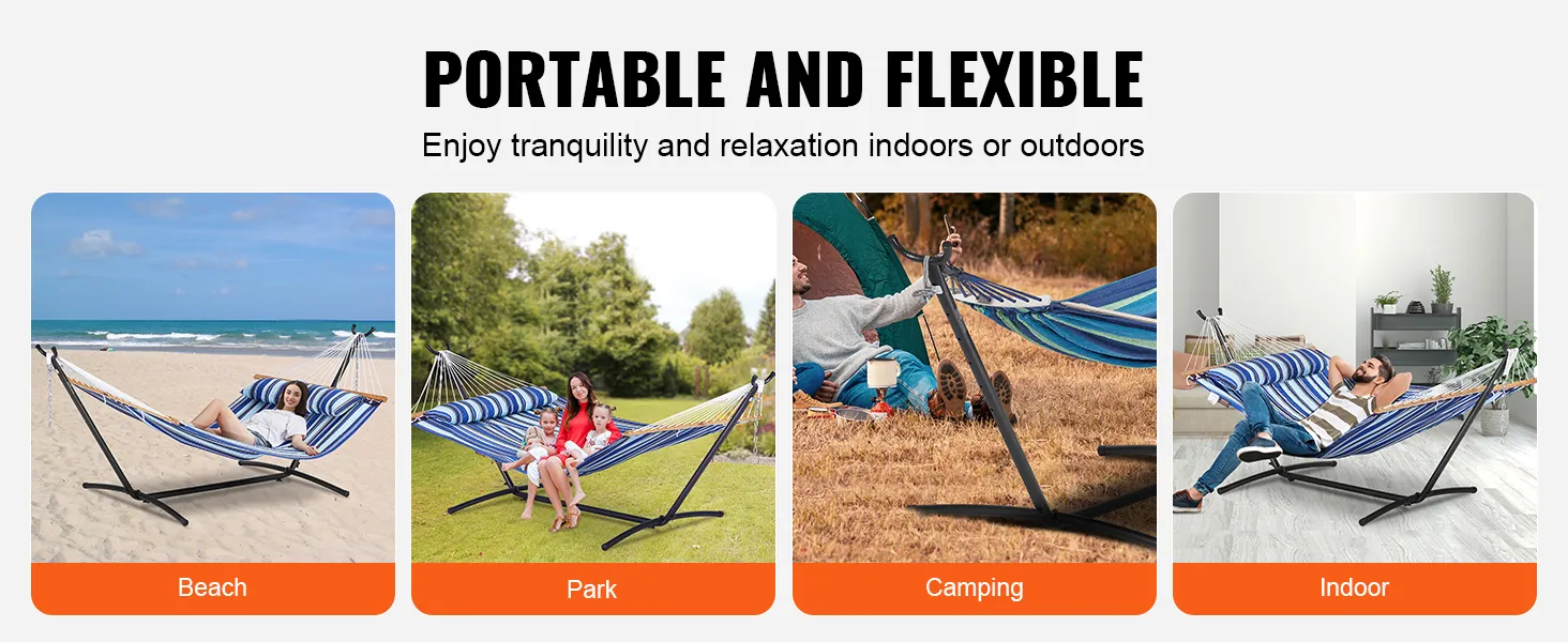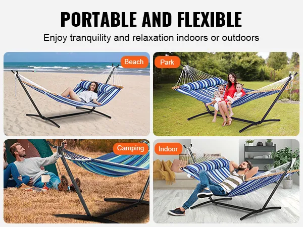 Portable & Space-Saving: This portable hammock stand features a space-saving design that occupies less space than other stands, easily fitting into your car's trunk. It comes with a carry bag for convenient storage or for taking it on picnics and camping trips.