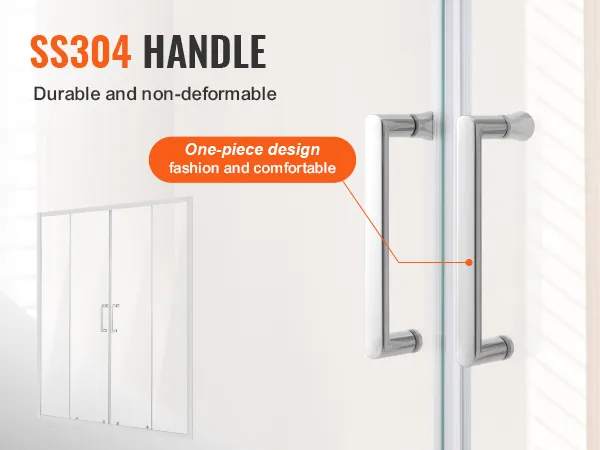 De 304 roestvrijstalen handgreep van deze semi-frameloze douchedeur heeft een geïntegreerd handgreepontwerp voor moeiteloos duwen en trekken. Het is niet alleen mooi en elegant, maar ook corrosiebestendig en gemakkelijk schoon te maken.