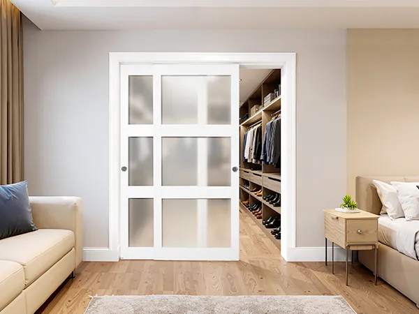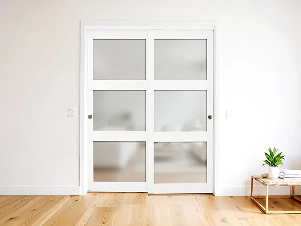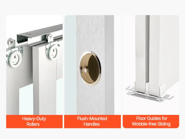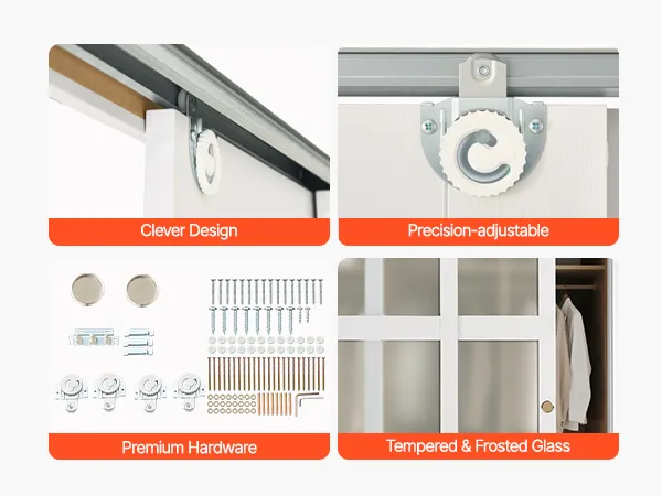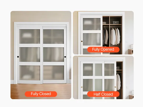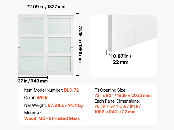 VEVOR Schuifdeur 1829 mm x 2032 mm (passende openingsmaat), gematteerde glazen bypass-schuifdeuren met bevestigingsset, massief hout en MDF-plaat met waterdicht PVC-oppervlak voor kasten, wit