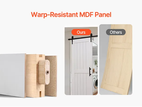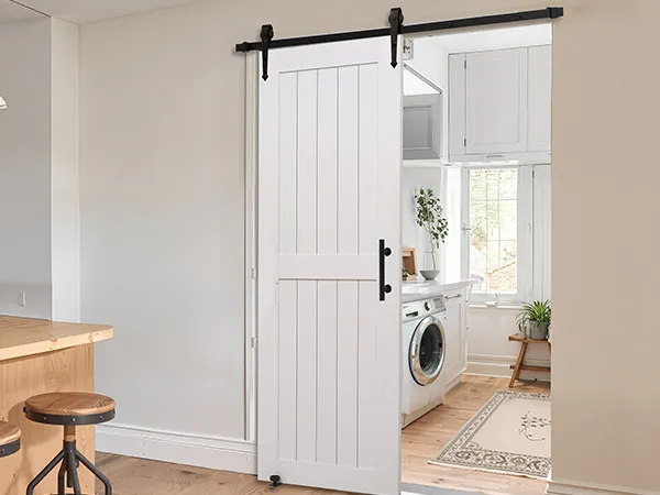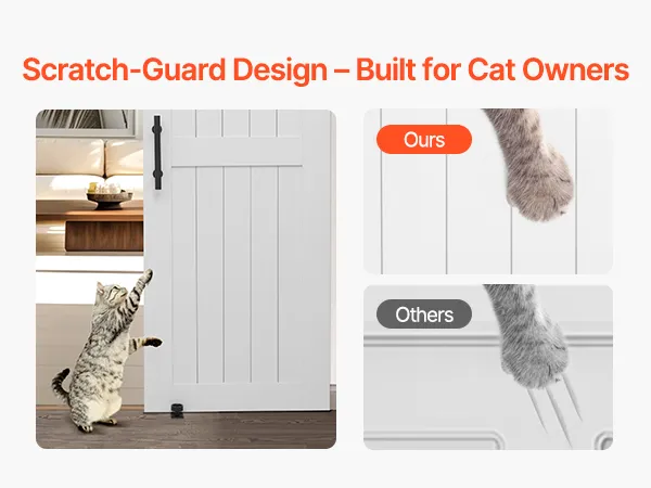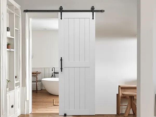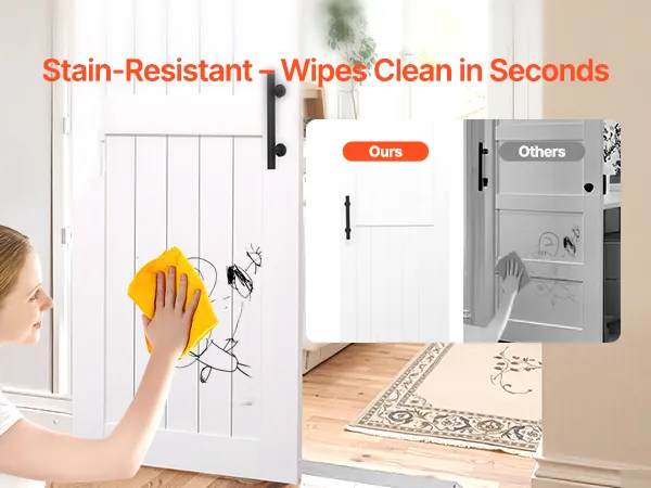 Waterdicht en krasbestendig: onze barndeur met hang- en sluitwerk is voorzien van een speciale waterdichte PVC-coating, waardoor hij ideaal is voor badkamers en keukens. Hij is bestand tegen dagelijkse krassen en slijtplekken, zelfs door kattenklauwen.