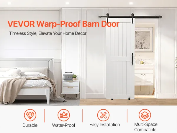 Veelzijdig: Deze barndeur is ideaal voor badkamers, keukens, wasruimtes, slaapkamers en woonkamers. Het witte design past bij verschillende interieurstijlen en voegt een vleugje elegantie toe aan uw ruimte.
