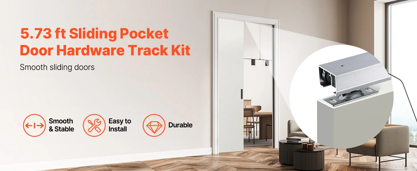 VEVOR Schuifdeur Hardware Track Kit Schuifdeursysteem 1746 mm Hardware Kit voor 610-914 mm brede enkele deuren, soepel en eenvoudig te installeren Schuifdeur Hardware 100 kg draagvermogen
