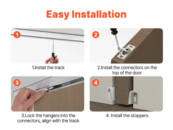 Onze schuifdeurbeslag- en railsets hebben een eenvoudig ontwerp, waardoor ze eenvoudig te installeren en te demonteren zijn. Het enige wat u hoeft te doen, is de duidelijke, duidelijke instructies volgen voor een snelle en probleemloze installatie.