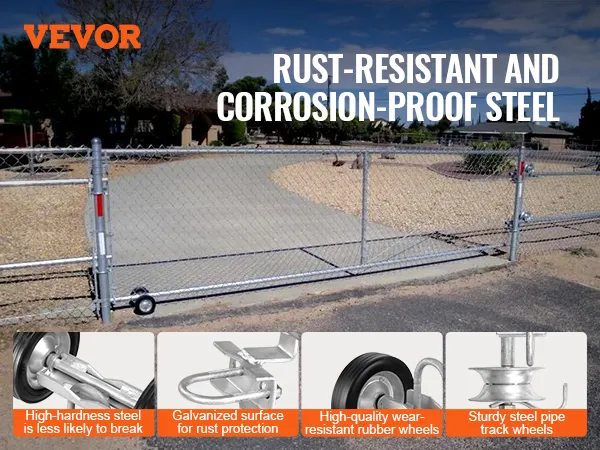 Deze robuuste schuifdeurset met rollenketting is voorzien van duurzame stalen en rubberen wielen die tot 270 kg kunnen dragen. Het gekartelde ontwerp verbetert de grip en stabiliteit en zorgt voor een soepele bediening.