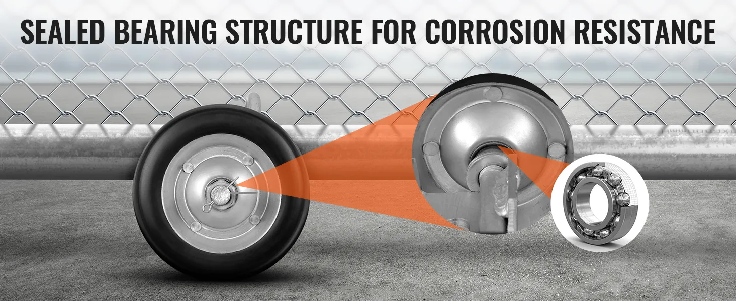 Soepele bediening: het afgedichte lagerontwerp van de zwenk- en zwenkwielen zorgt voor soepel en stil glijden. Het is corrosie-, water- en stofbestendig en vermindert wrijving en geluid bij dagelijks gebruik. Dit verlengt de levensduur van het poortrolsysteem, vermindert de onderhoudsvereisten en verhoogt de efficiëntie.