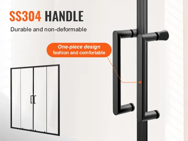 De 304 roestvrijstalen handgreep van deze semi-frameloze douchedeur heeft een geïntegreerd handgreepontwerp voor moeiteloos duwen en trekken. Het is niet alleen mooi en elegant, maar ook corrosiebestendig en gemakkelijk schoon te maken.