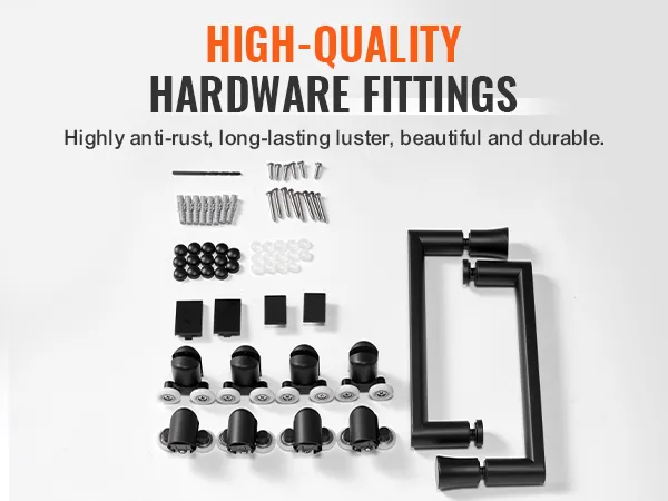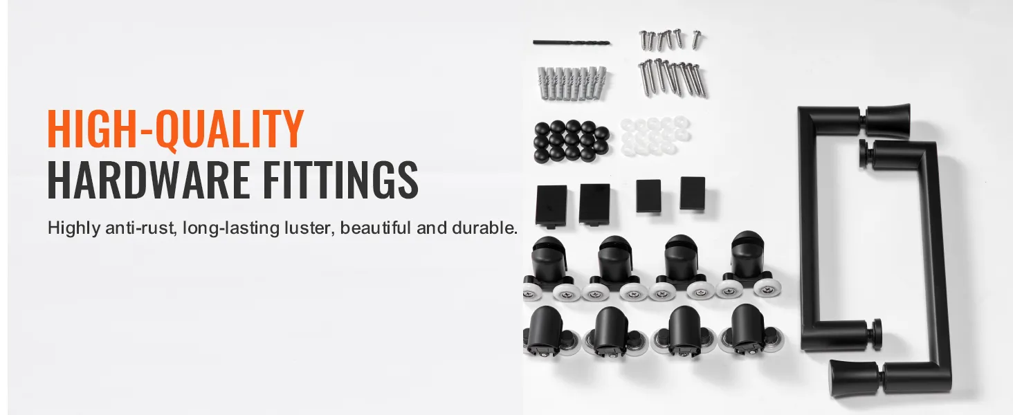De badkamerschuifdeur is uitgerust met hoogwaardige hardware met geavanceerde antiroesttechnologie, die zorgt voor langdurige glans, schoonheid en duurzaamheid en een gevoel van kwaliteit toevoegt aan uw badkamer.