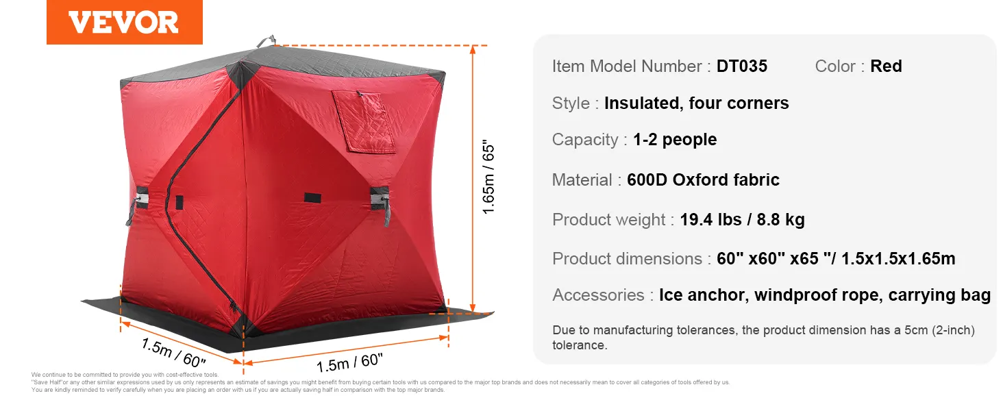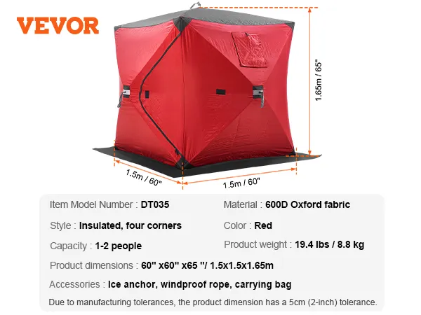 This ice fishing shanty is designed for 1-2 people. Its multi-functional use meets your needs, whether for outdoor ice fishing, winter camping, temporary outdoor shelter, or covering and protecting equipment in cold weather.