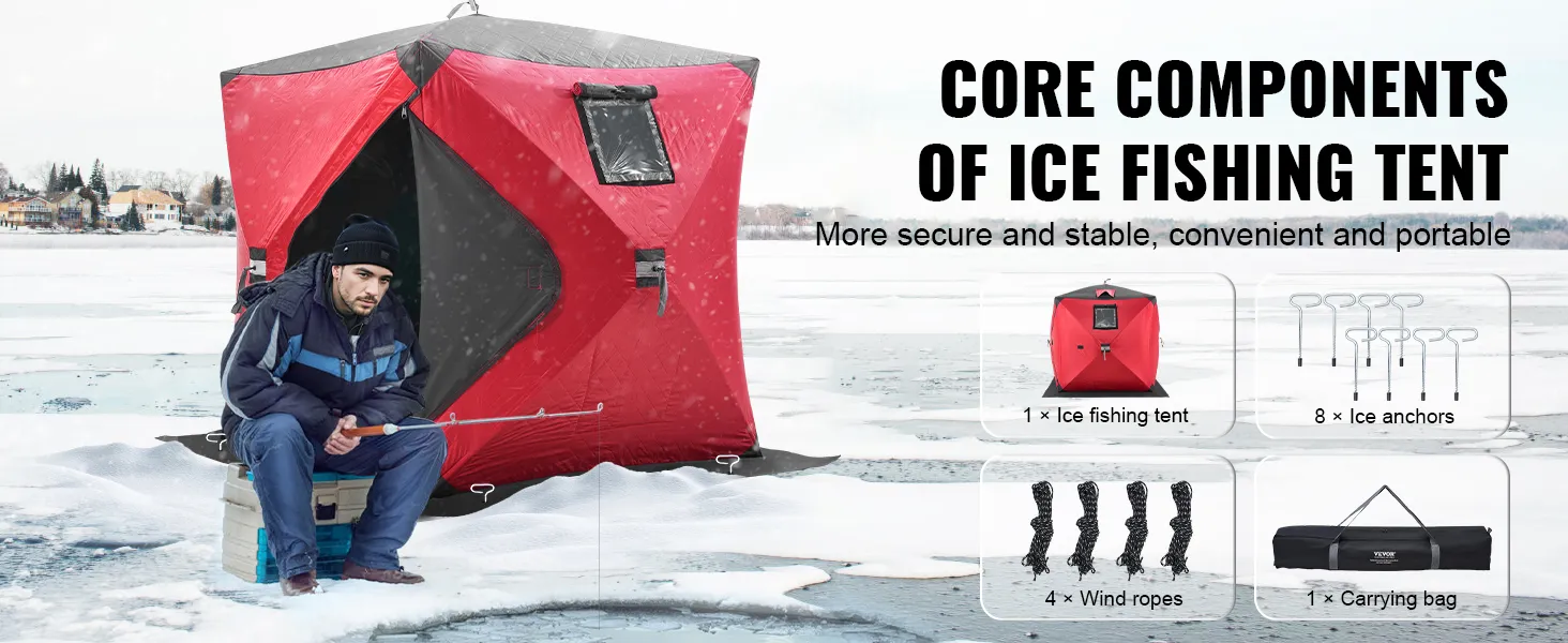 Easy to Carry: This quick-open foldable ice fishing tent is lightweight and easy to carry, making it simple to store. You can pack everything into a large tote bag with backpack straps for convenient transport. Start your ice fishing adventure anytime, anywhere, and enjoy great convenience for outdoor enthusiasts