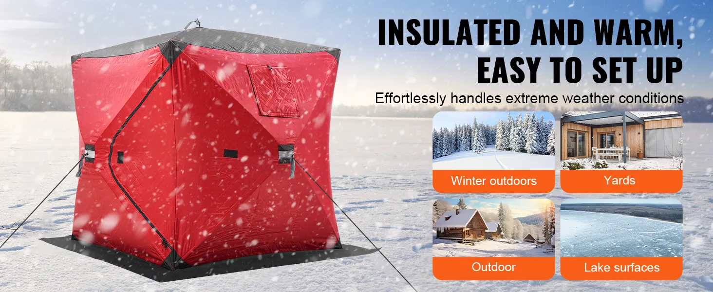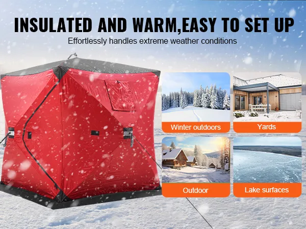 This ice shelter fishing tent is specially designed for outdoor ice fishing enthusiasts, suitable for various scenes such as winter outdoors, backyards, outdoor areas, and lakes. It can be quickly set up, allowing you to enjoy a warm, cozy space in no time.
