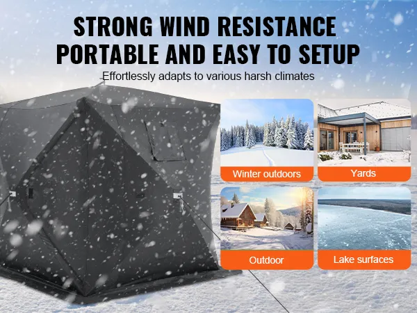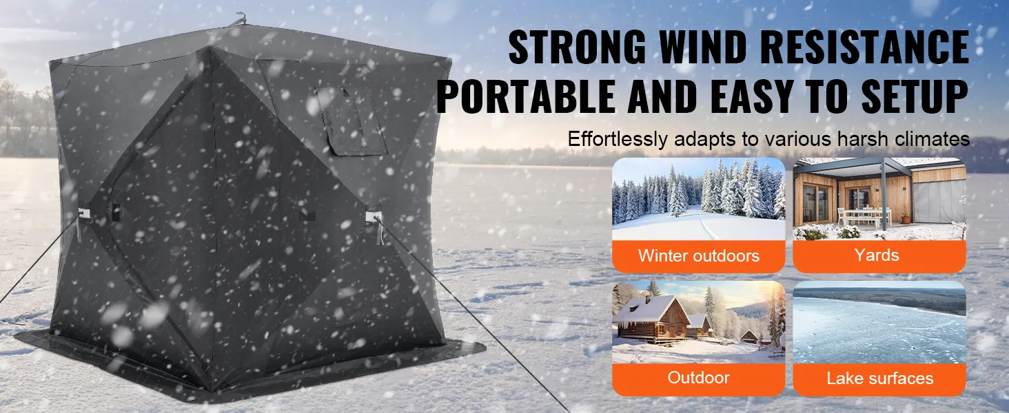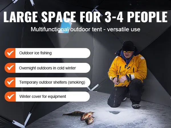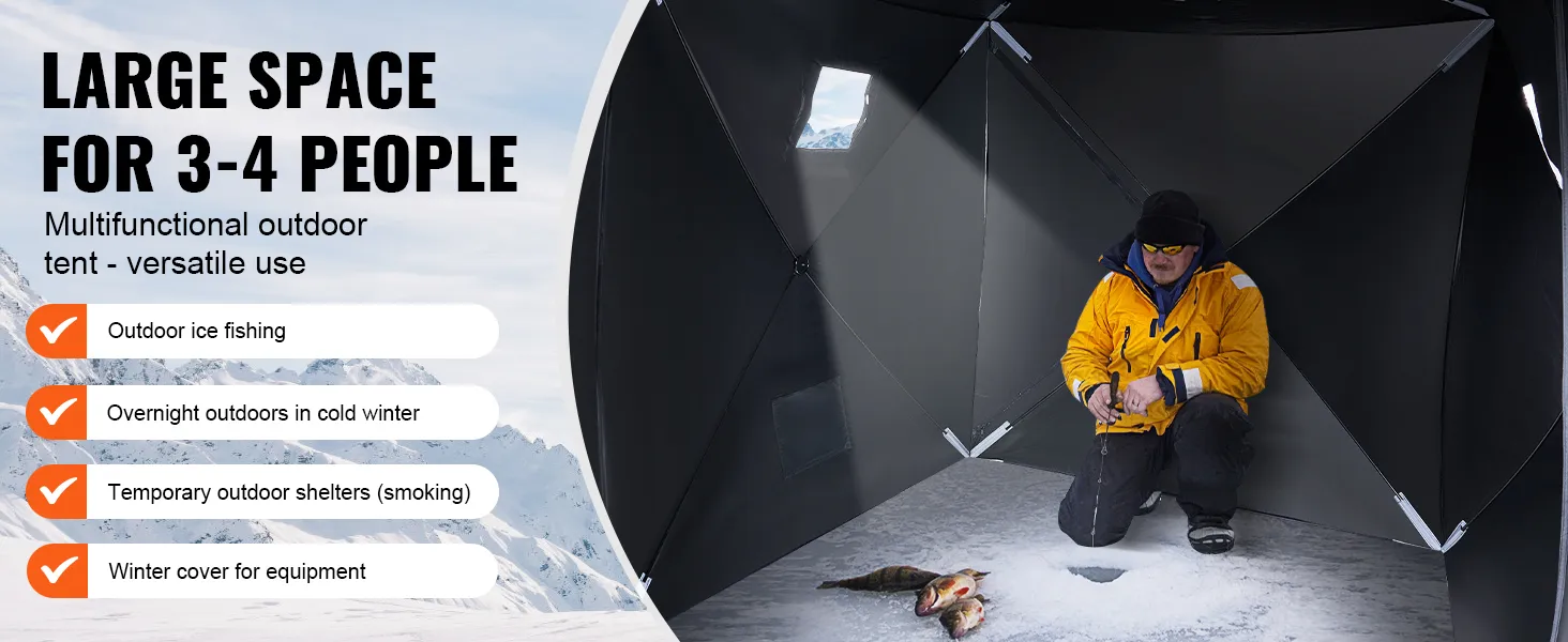 Het multifunctionele gebruik voldoet aan uw behoeften, of het nu gaat om ijsvissen in de buitenlucht, kamperen in de winter, tijdelijk buitenverblijf of het afdekken en beschermen van uitrusting bij koud weer.