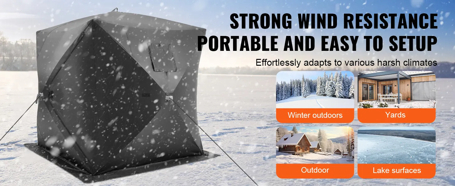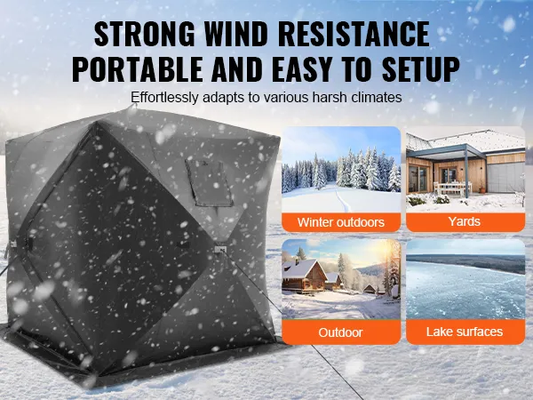 Het multifunctionele gebruik voldoet aan uw behoeften, of het nu gaat om buiten ijsvissen, winterkamperen, tijdelijk buitenverblijf of het afdekken en beschermen van uitrusting bij koud weer.