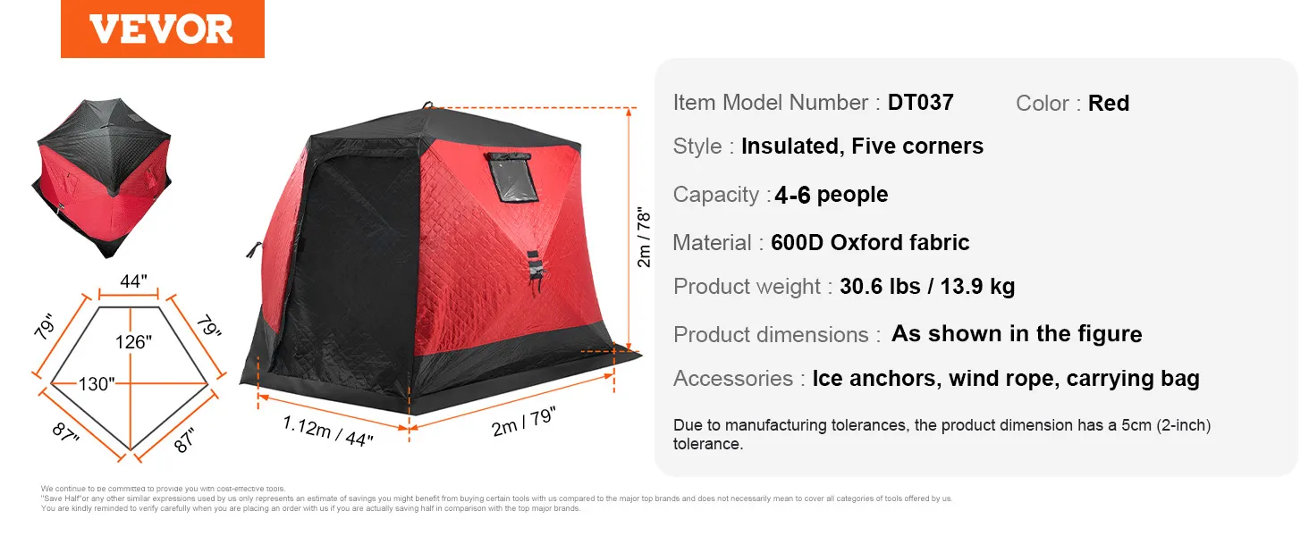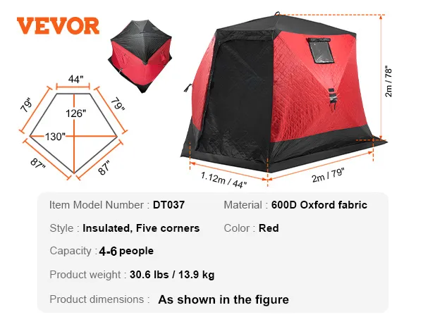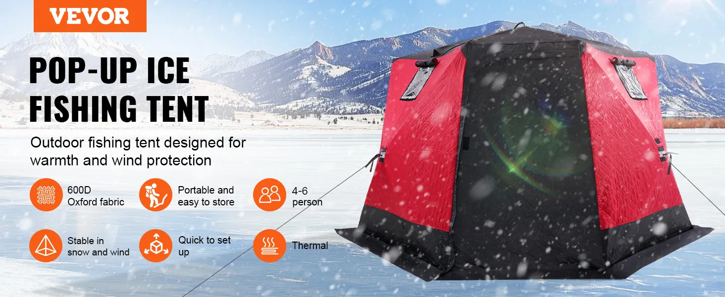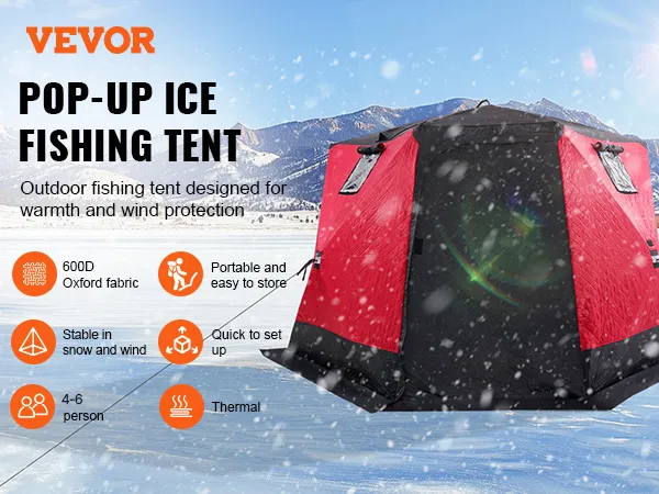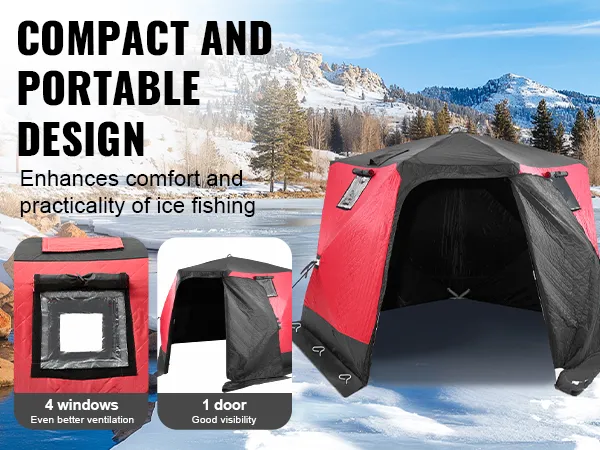 Pop-up Design: The convenient pop-up design allows for easy setup and takedown of the ice shanty for winter fishing. With just a few simple steps, you can have your shelter ready for use or packed away quickly.