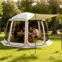 VEVOR Screen House Tent, 3660 x 3380 x 2300 mm, 10-12 Person Pop Up Screen Tent with Extended Awning, Portable Screened in Canopy with Carry Bag, Netting Sides, for Patio, Outdoor Activities, Beige