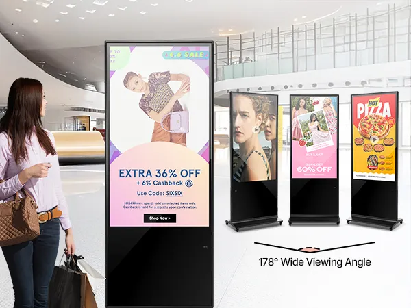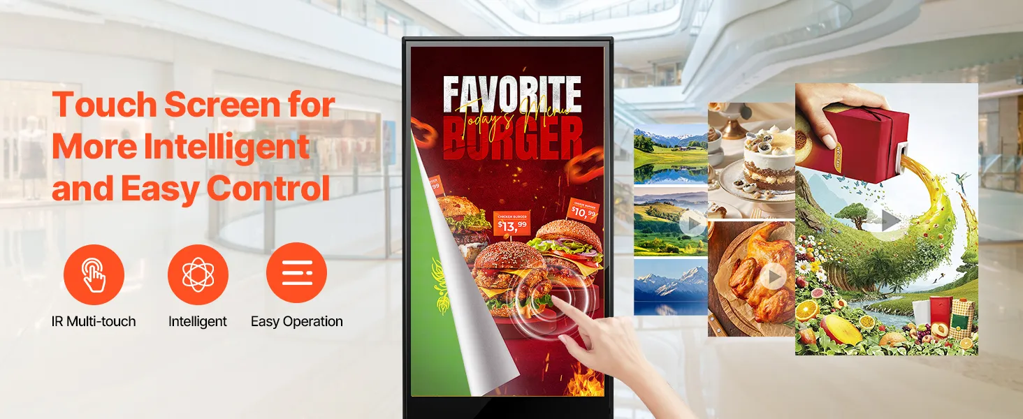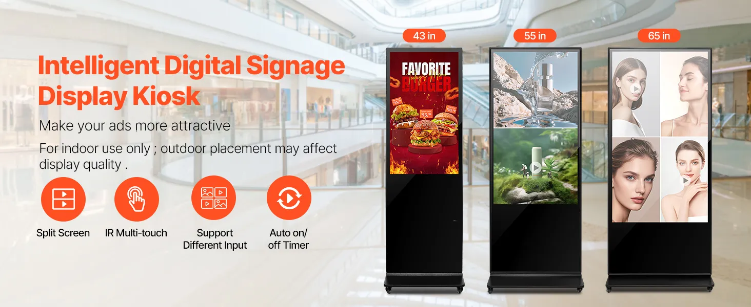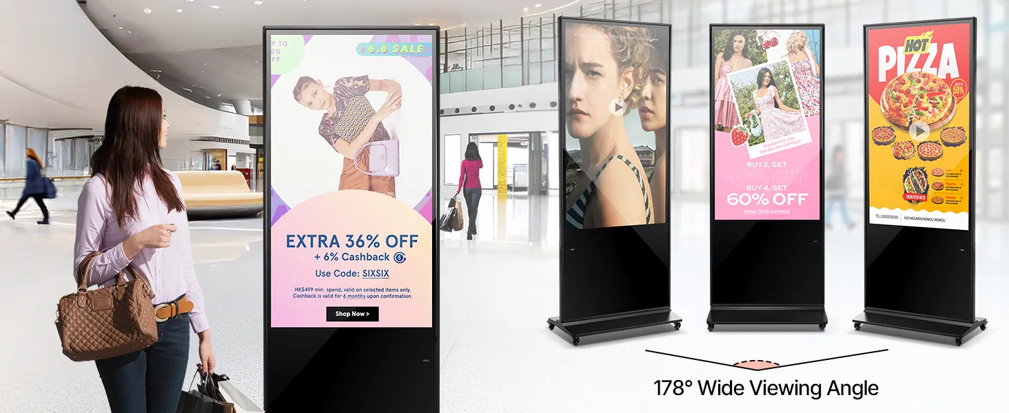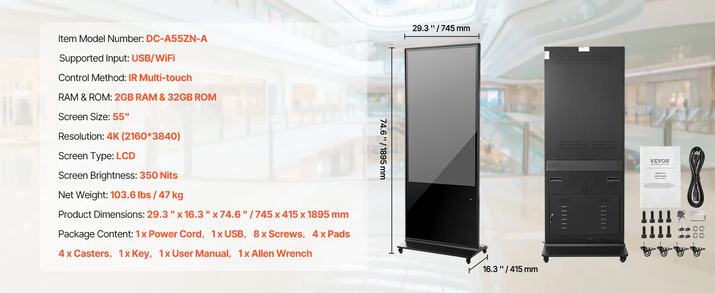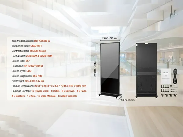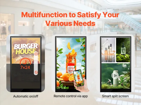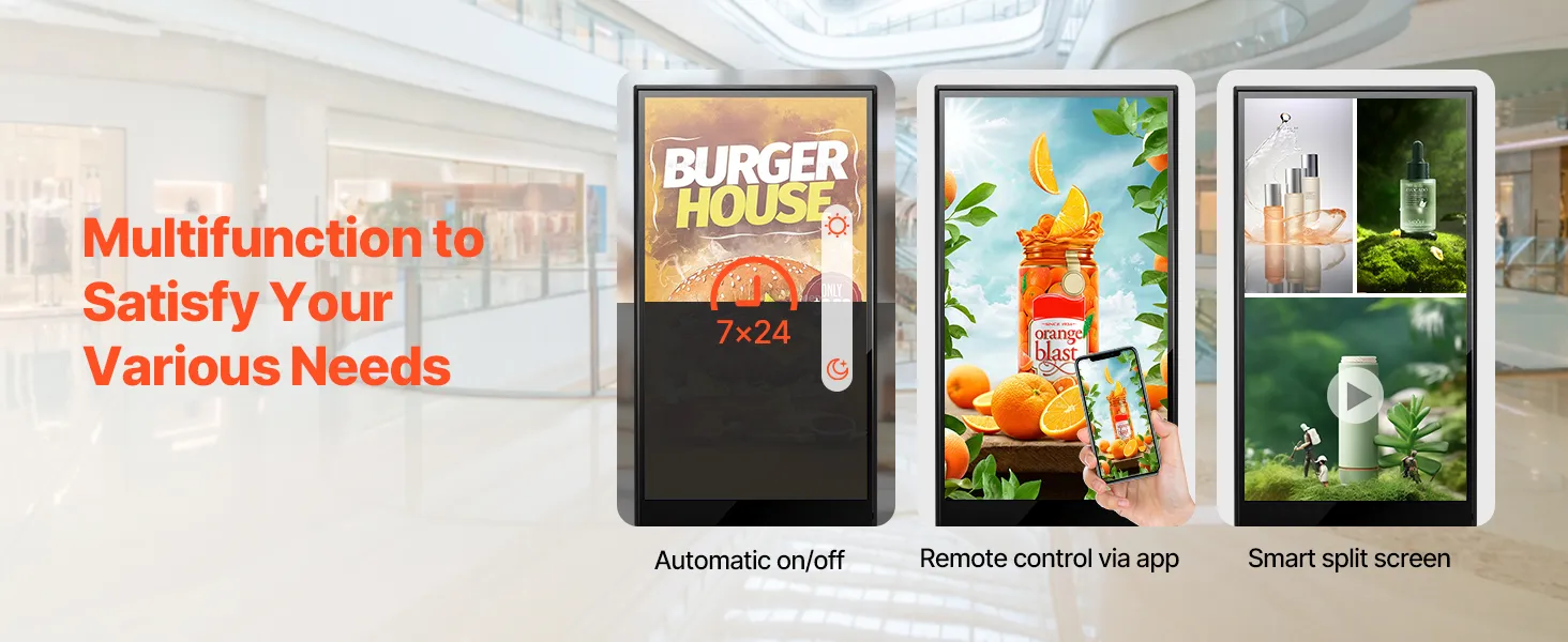 Multifunctioneel en veelzijdig: stel timers in om het apparaat aan en uit te zetten en bespaar zo energie en moeite. Bedien het digitale signagescherm voor meerdere winkels op afstand, waardoor het ideaal is voor winkelketens. Uitgerust met wielen voor eenvoudige verplaatsing. Veelgebruikt in bars, restaurants, hotels, kledingwinkels, bibliotheken en meer