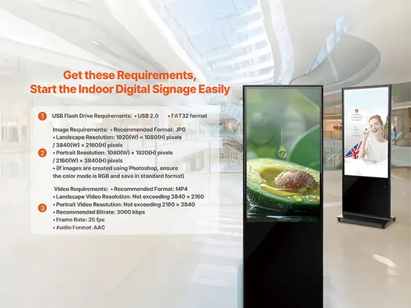 Groot scherm met Ultra HD-resolutie: beschikt over een 55-inch (140 cm) LCD-scherm met 4K-resolutie en indrukwekkende helderheid van 350 nits, waardoor uw reclame duidelijk en levendig wordt weergegeven. Met een ultrabrede kijkhoek van 178° maximaliseert de klantenstopper de zichtbaarheid en trekt meer voorbijgangers aan