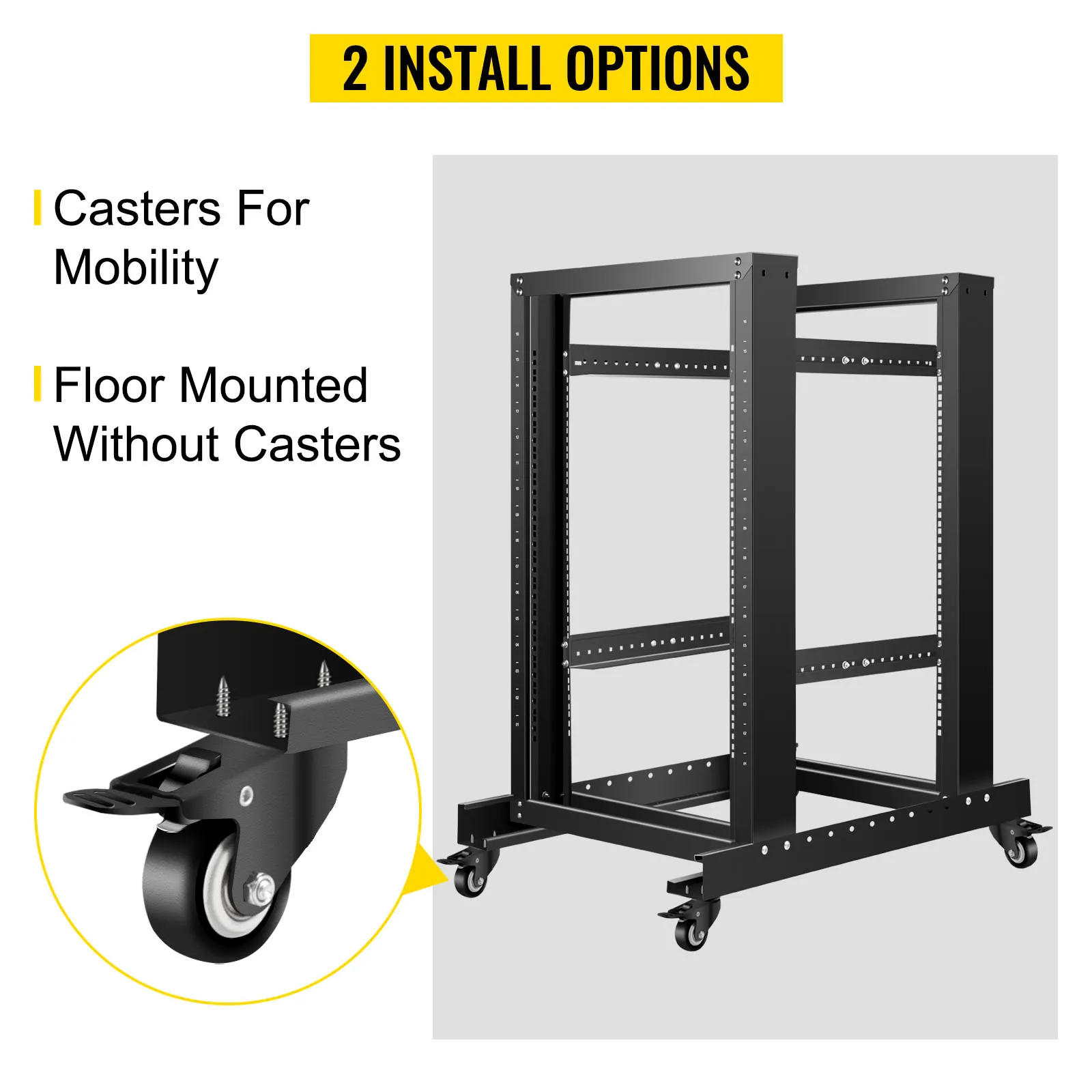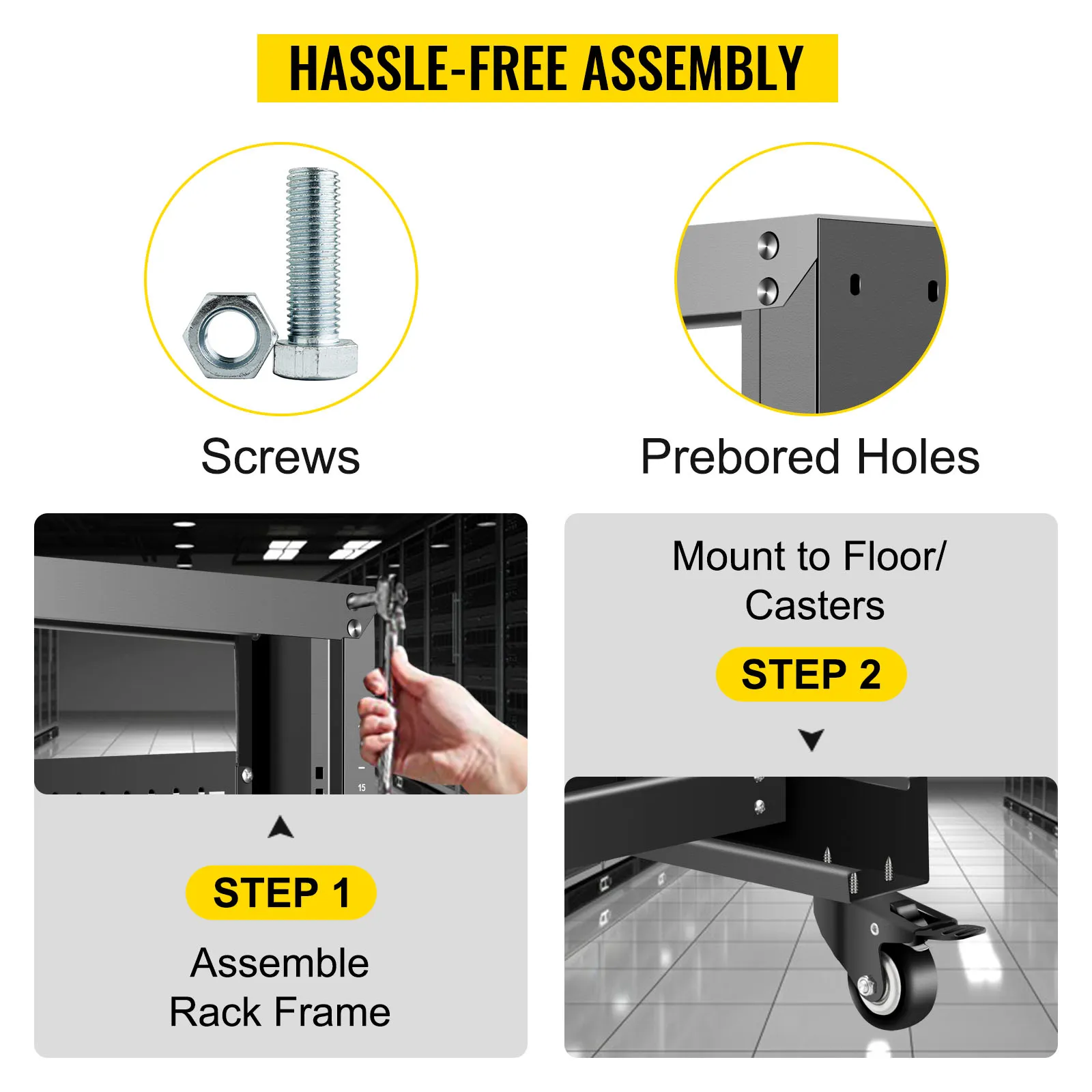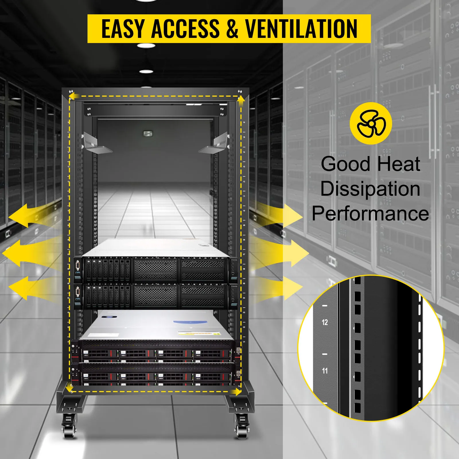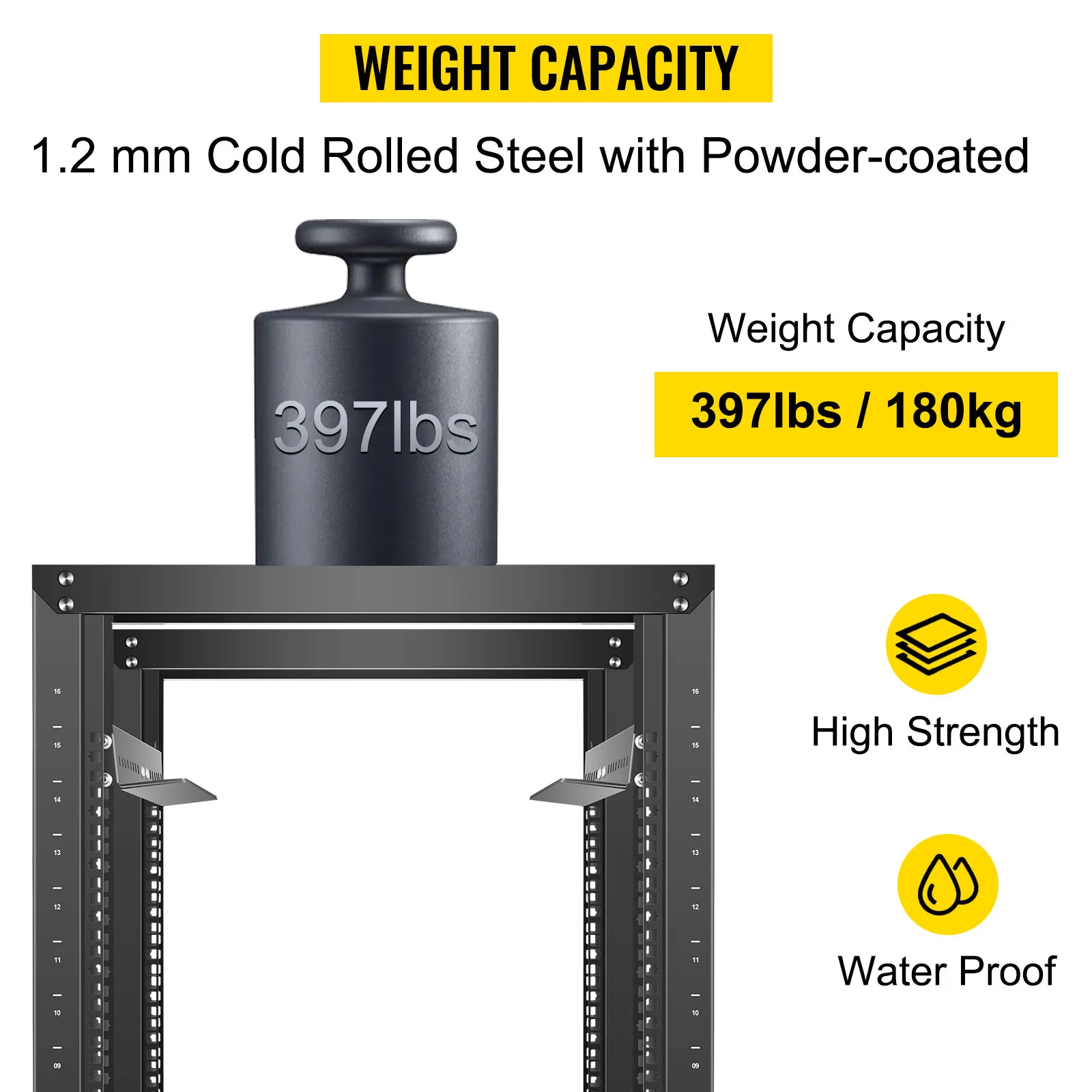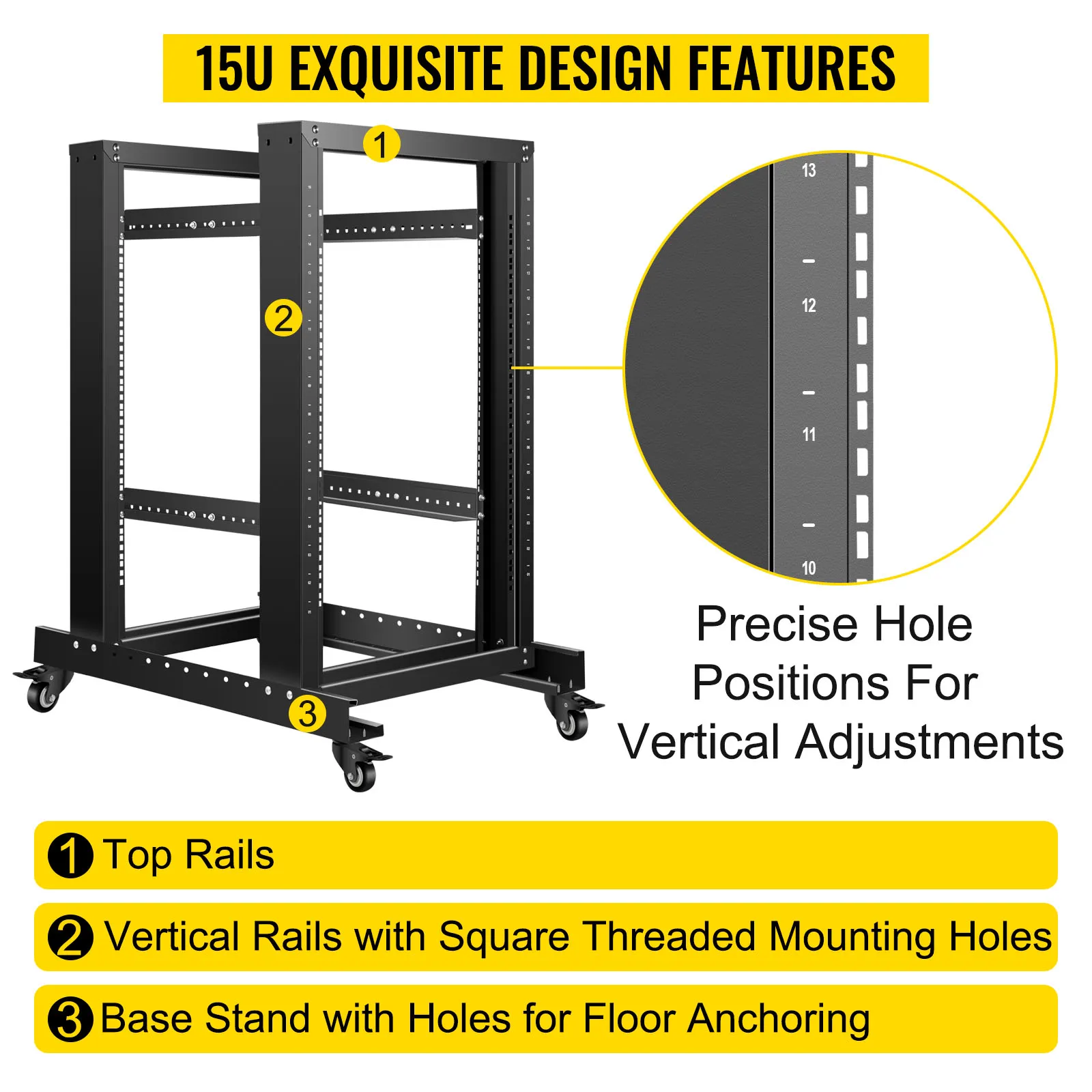 VEVOR's 4-post open frame server rack is een ideale, voordelige oplossing voor veilige IT-omgevingen en andere toepassingen waarbij een afsluitbare behuizing. Ons product biedt 15U van rack ruimte en kan s TEUN een totaal gewicht van maximaal 397 lbs. Het rek heeft sterke staal koudgewalst constructie, eenvoudige montage en een zelf-kwadratuur ontwerp met een voorziening voor verankeringsopties. Het biedt een betrouwbare oplossing voor het monteren van servers, UPS en andere rack-monteerbare apparatuur.