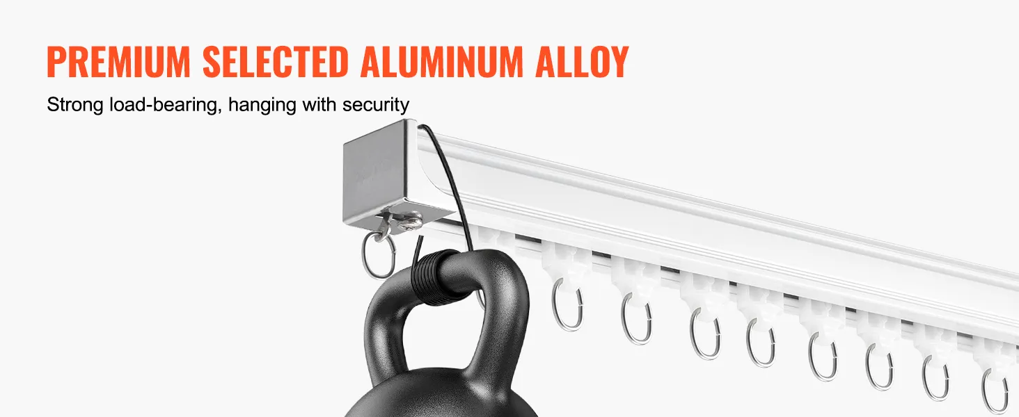 Het zeer sterke gordijnrailsysteem van aluminiumlegering kan veilig aan het plafond of de muur worden bevestigd en biedt een hoog draagvermogen. U hoeft zich geen zorgen te maken dat de gordijnen naar beneden vallen.