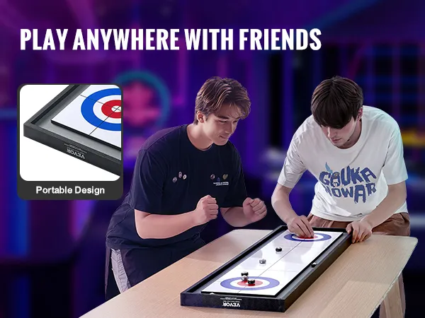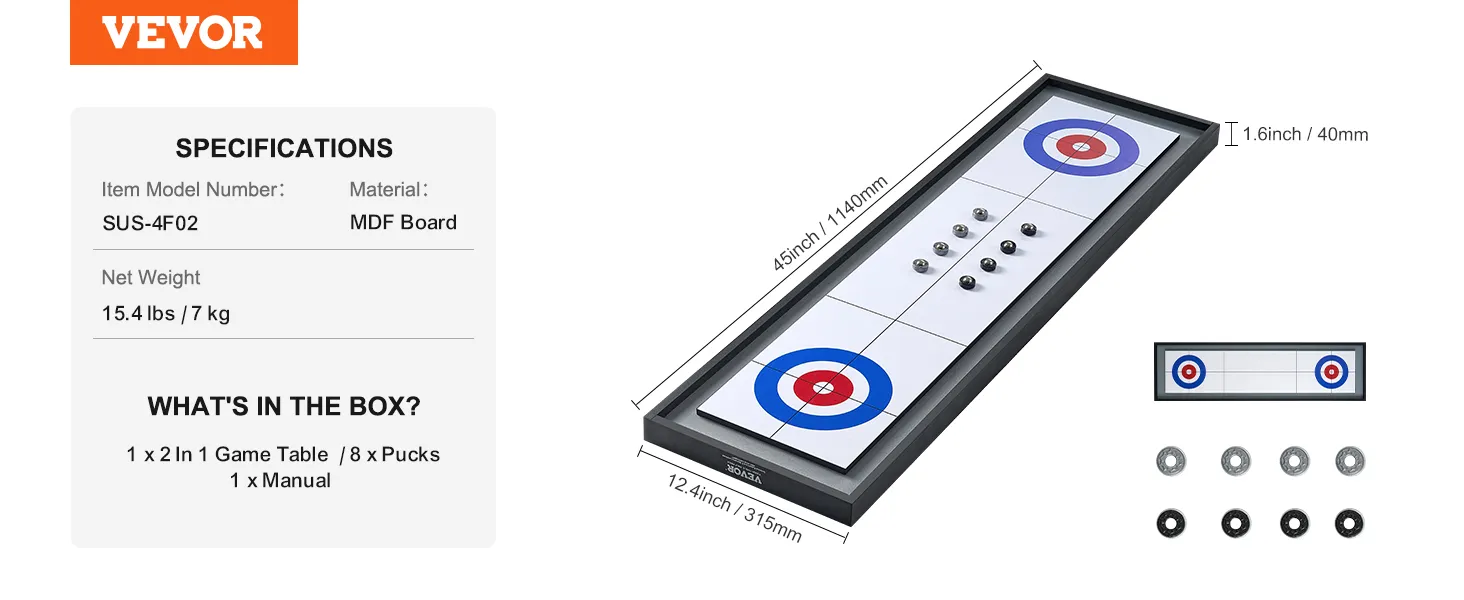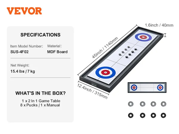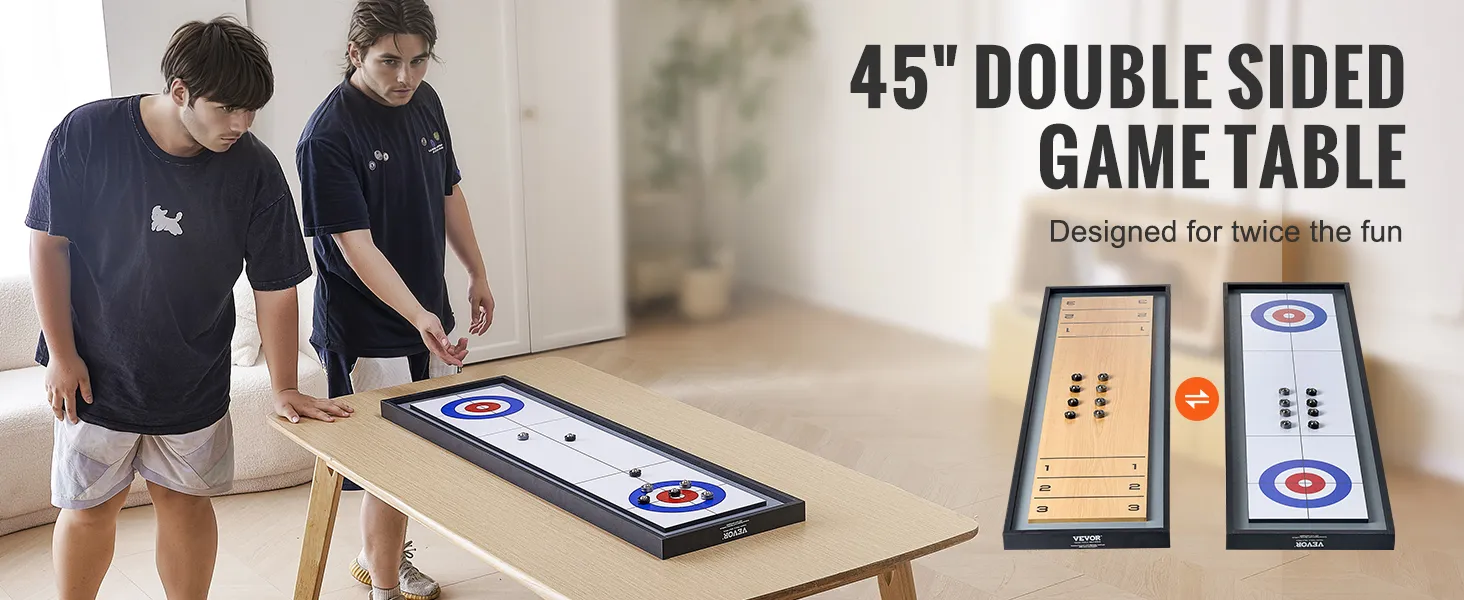 VEVOR Shuffleboard en Curling 2-in-1 bordspellen, 45 inch draagbare tafelset, tweezijdige tafelshuffleboard met 8 rollende pucks, shuffleboard en curling combospelset voor kinderen en gezin
