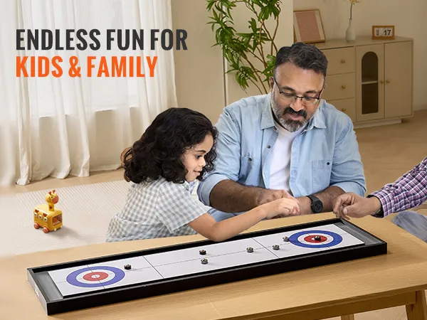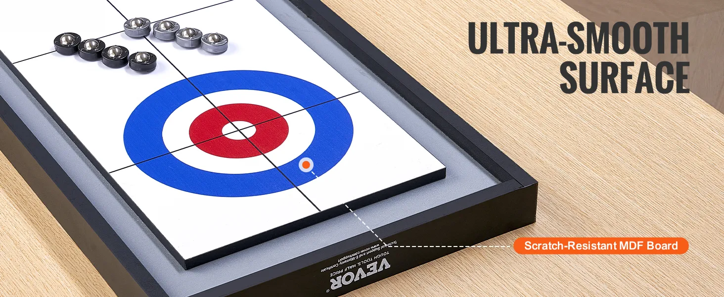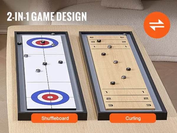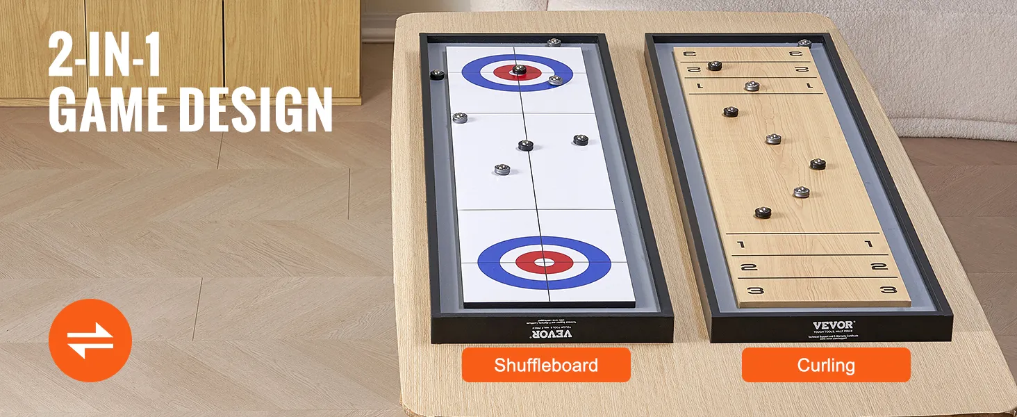 Dubbelzijdig speelbord: ervaar dubbel zoveel plezier met je gezin met sjoelbak aan de ene kant en curling aan de andere kant.