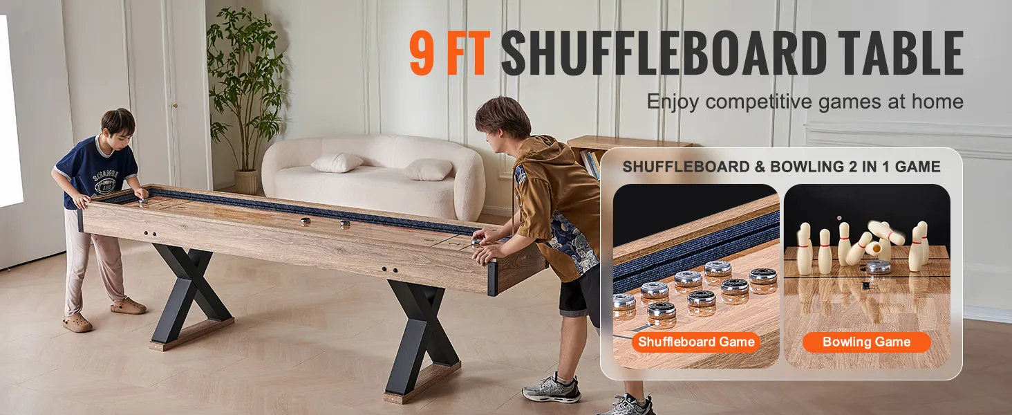 9 FT Shuffleboard Table: The 9-foot length provides ample space for exciting gameplay, making every game more thrilling and visually appealing.