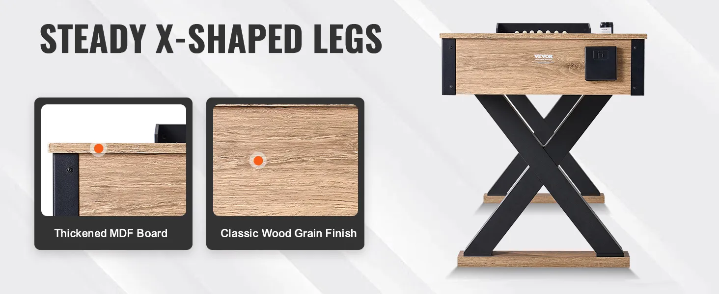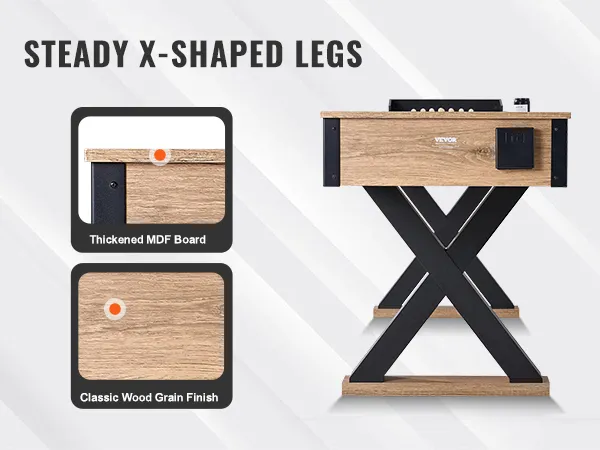 Stable X-Shaped Legs: The shuffle board game table features thickened MDF board and X-shaped legs, increasing steadiness and security. This robust construction ensures a solid playing experience, allowing you to focus on your game without any worries about the table’s stability.