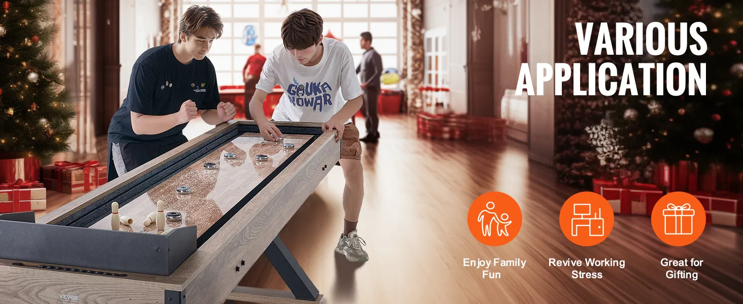 2 Games in 1: Double your fun with our 2-in-1 shuffleboard that offers two games in one. Enjoy the traditional shuffleboard game or switch things up with a fun game of bowling. This dual-game feature ensures endless entertainment for players of all ages.