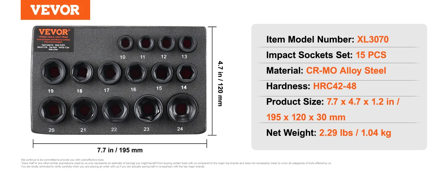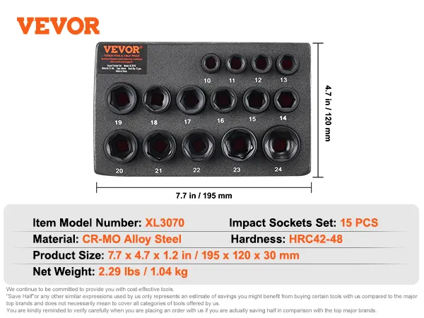 Op zoek naar een professionele en draagbare krachtdoppenset? De 15-delige slagdoppenset van VEVOR biedt een compleet assortiment gereedschappen die bijzonder geschikt zijn voor het repareren van diverse automerken.