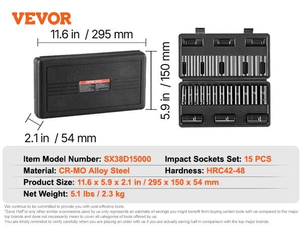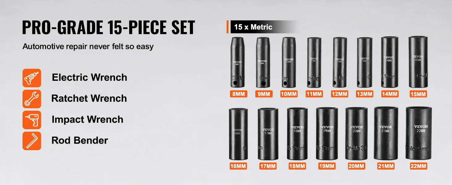 Op zoek naar een professionele en draagbare krachtdoppenset? De 15-delige slagdoppenset van VEVOR biedt een compleet assortiment gereedschappen die bijzonder geschikt zijn voor het repareren van diverse automerken.