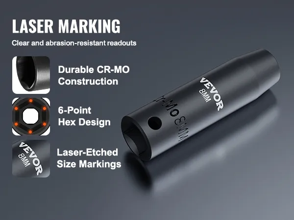 Gemakkelijk leesbare maatmarkeringen: De maatmarkeringen op deze 15-delige slagmoersleuteldoppenset zijn zorgvuldig lasergegraveerd en gerold, waardoor de dopmaten zelfs bij weinig licht gemakkelijk te zien zijn.