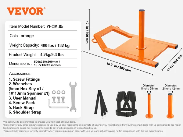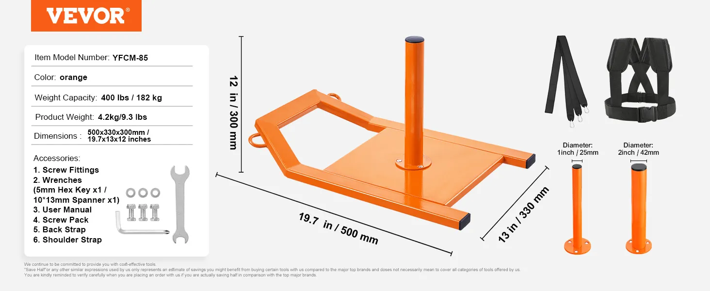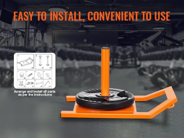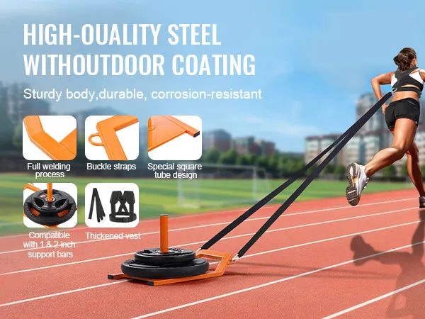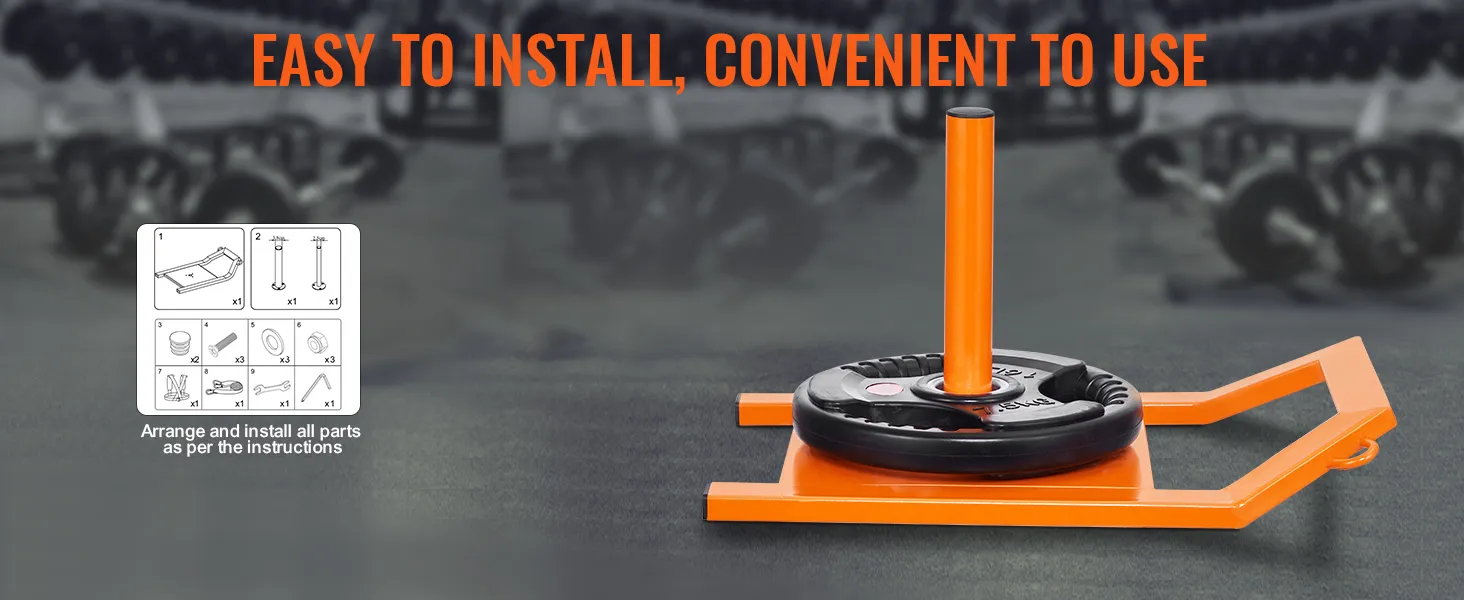 Steunstangen: De fitnessslee wordt geleverd met steunstangen van 1 inch en 2 inch, waardoor deze geschikt is voor standaard halterschijven. Dankzij het indrukwekkende draagvermogen van 182 kg (400 lbs) kunt u precies de juiste hoeveelheid gewicht toevoegen die past bij uw trainingsbehoeften, waardoor u effectief vet en calorieën verbrandt. Het biedt veelzijdigheid met gewichtsschijven