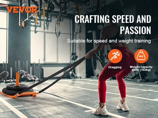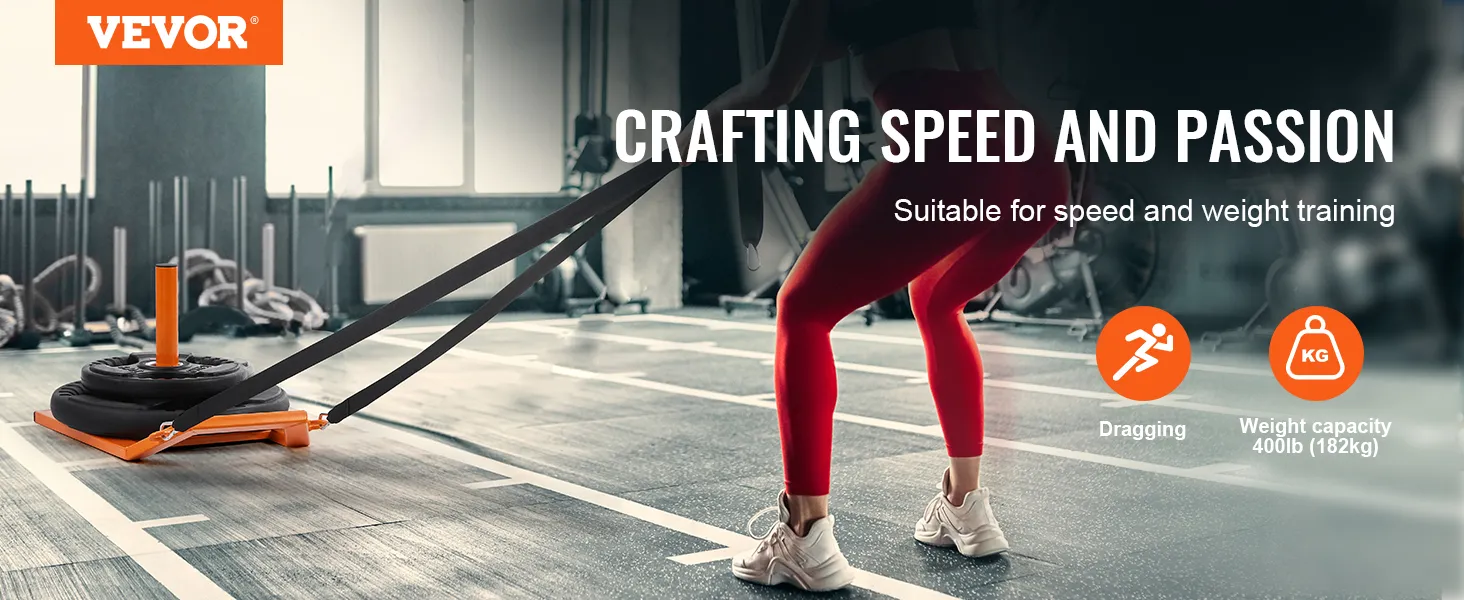 Deze fitnessslee biedt verschillende trainingsmogelijkheden om de algehele spierkracht en snelheid te verbeteren. Het apparaat kan een gewicht tot 182 kg dragen en biedt een grondige training voor uw kracht en snelheid.
