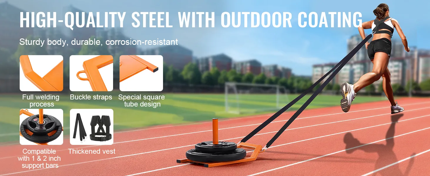 VEVOR Pull Sled Gewichtsslee Training Slee Fitness voor krachttraining, snelheidstraining Trainingsapparatuur van staal voor atletische oefeningen en snelheidsverbetering, oranje