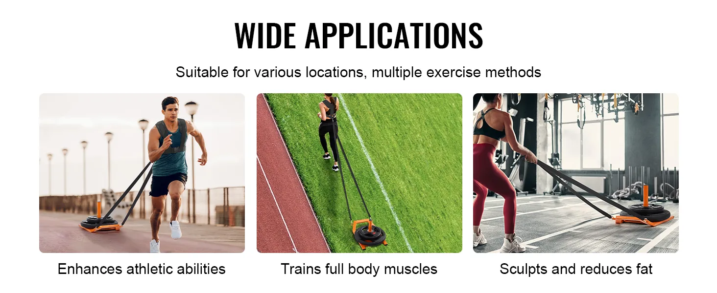 Kracht- en snelheidstraining: Met deze gewichtsslee kunt u uw algehele spierkracht en snelheid verbeteren door middel van trekoefeningen. Het daagt je kracht en snelheid, behendigheid, uithoudingsvermogen en cardiovasculaire functie volledig uit. Of u nu een beginner of een ervaren atleet bent, u kunt de juiste stijl voor uw behoeften kiezen