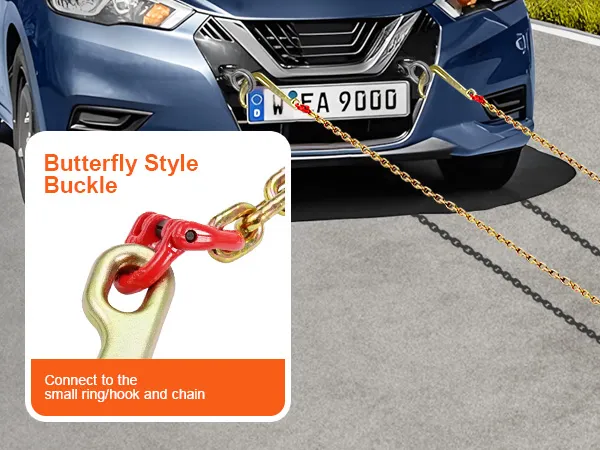 Overal inzetbaar: De trekketting wordt veel gebruikt bij diverse trek- en mobiele activiteiten. Hij is uitgerust met een grote J-haak, R-haak, T-haak, kleine J-haak en enterhaak, geschikt voor diverse voertuigen en scenario's.