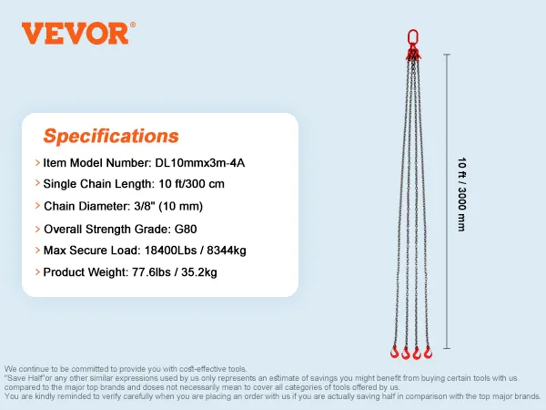 VEVOR, uw exclusieve gereedschapsexpert. Deze kettinghanger is gemaakt van hoogwaardig staal. Het beschikt ook over haken met veertongen voor een betere grip en beveiliging van grote ladingen.