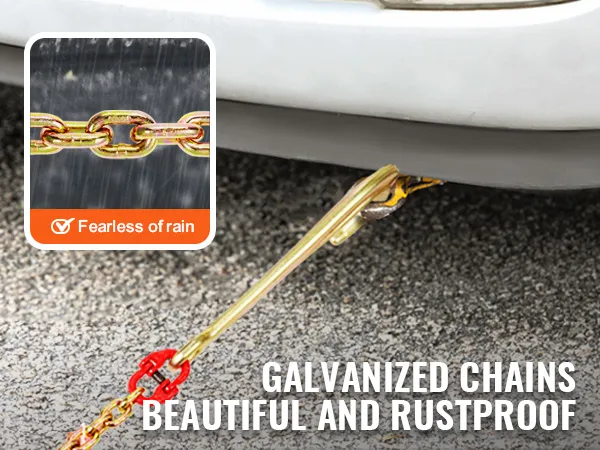 5400 lbs laadvermogen: onze J-haak sleepketting heeft een laadlimiet van 5400 lbs. Kettingdiameter: 5/16 inch; Kettinglengte: 6 voet. Dankzij deze features kun je er zorgeloos gebruik van maken.