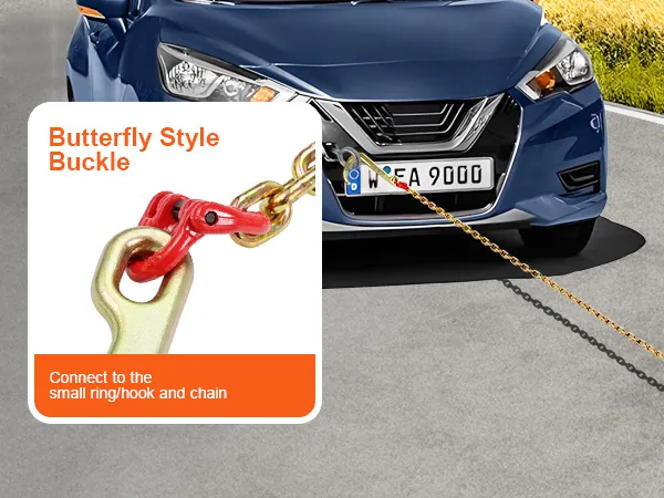 Overal inzetbaar: De trekketting wordt veel gebruikt bij diverse trek- en mobiele activiteiten. Hij is uitgerust met een grote J-haak, R-haak, T-haak, kleine J-haak en enterhaak, geschikt voor diverse voertuigen en scenario's.