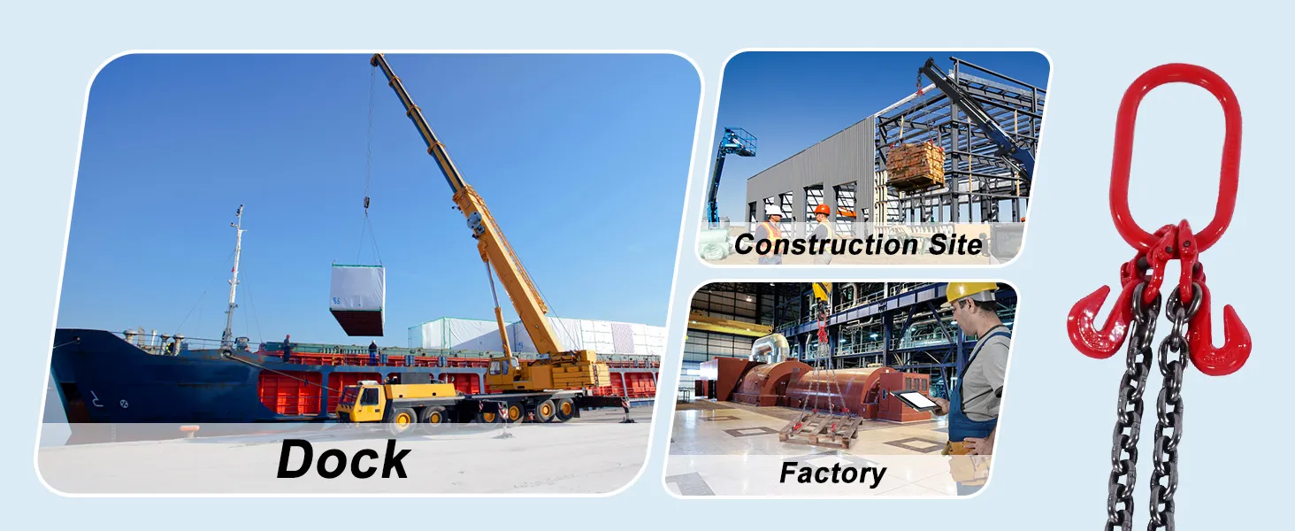 Heavy Duty Chain & Hooks: Constructed of G80 Mn-steel chain and alloy steel hook, our chain sling features full-automatic welding technology, designed for long-term use.